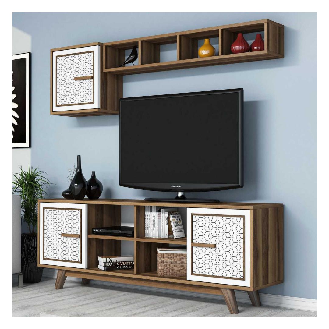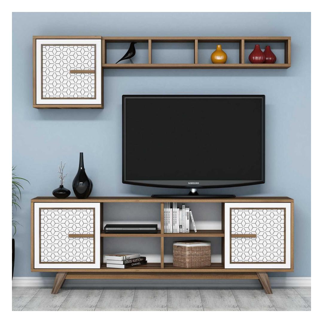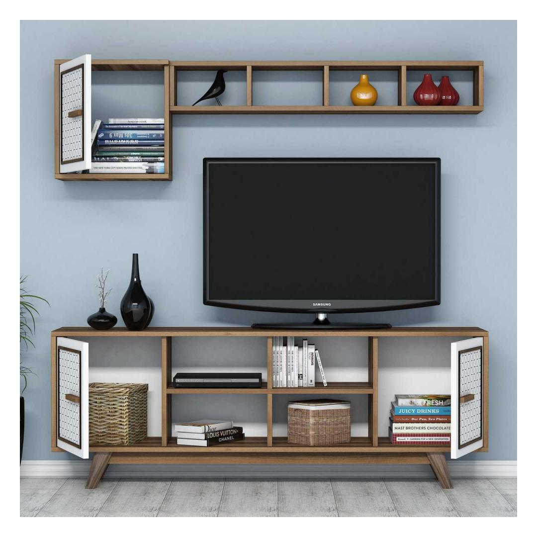 Pähklipuu ja valge värvi kombinatsioon lisab teie elutuppa elegantsi ja rafineeritust. Kontrastsed värvid loovad hämmastava visuaalse mõju, muutes selle telerikapi tähelepanu keskpunktiks igas ruumis.