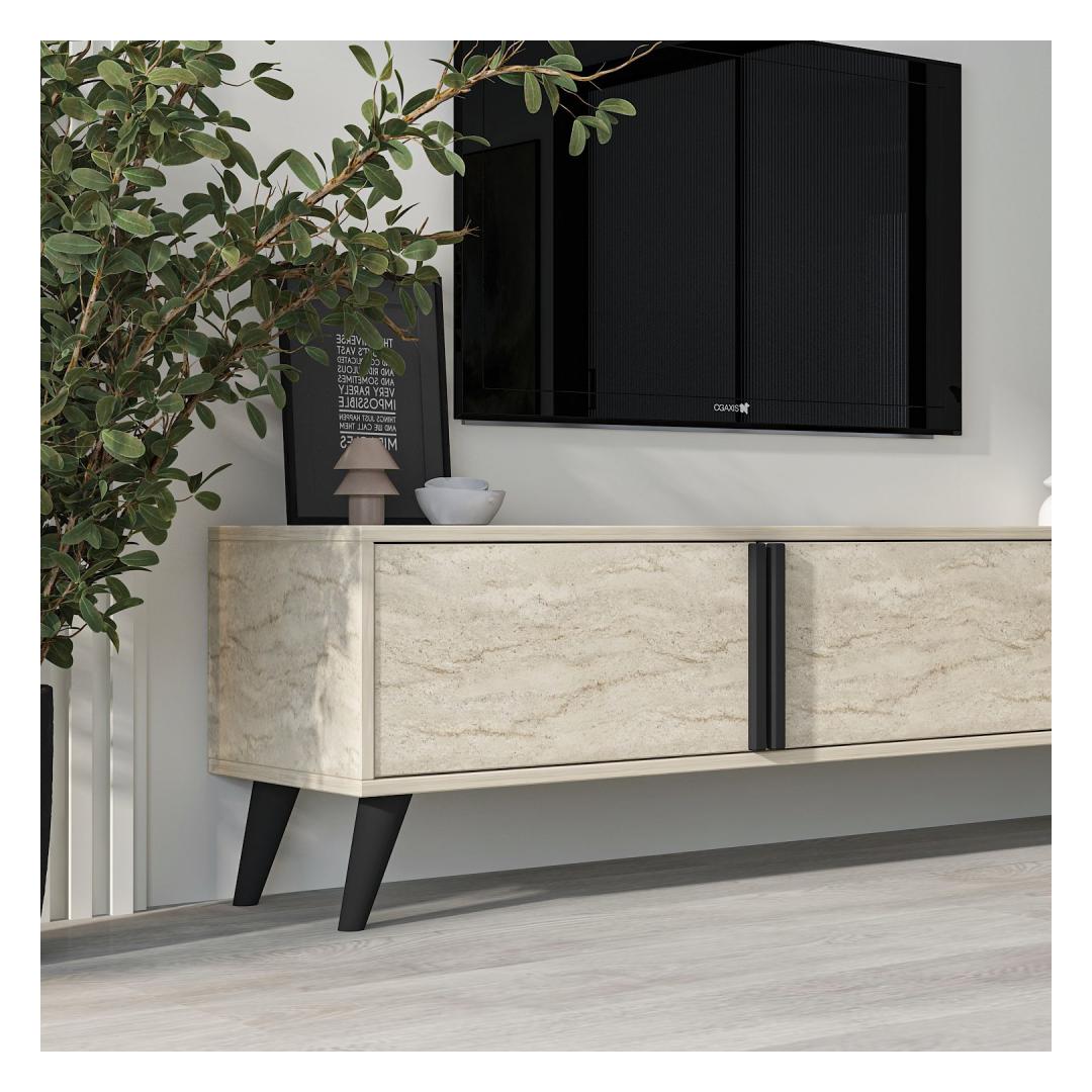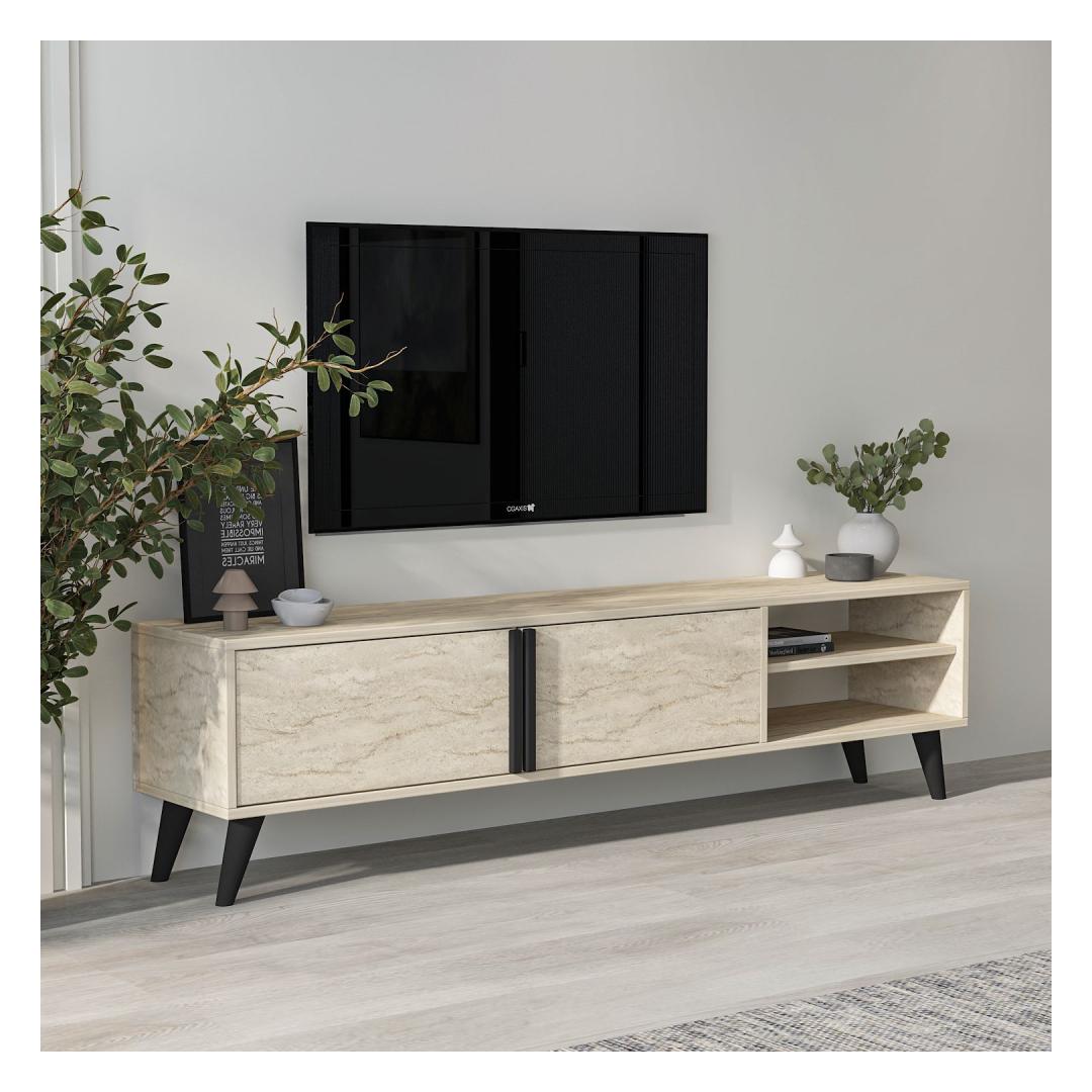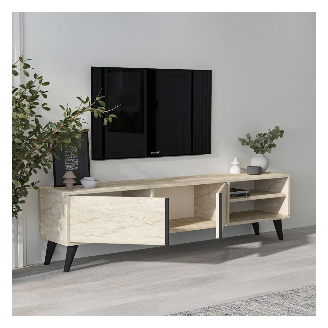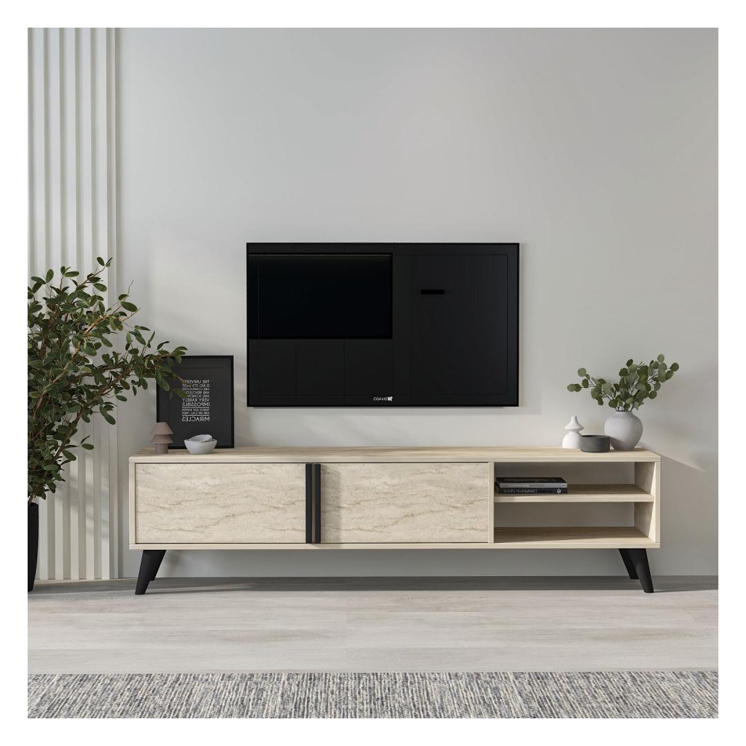 Muuda oma elutuba stiilseks ja organiseeritud ruumiks meie hämmastava Travertine värvi TV-alusega. See TV-alus ei ole lihtsalt mööbliese, vaid elegantsi ja rafineerituse väljendus.