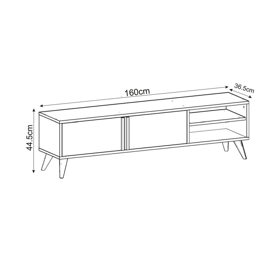 Valmistatud 100% melamiinkattega puitlaastplaadist, on see TV-alus vastupidav ja loodud kestma. 18 mm paksus tagab stabiilsuse ja tugevuse, samas kui 160 cm laius pakub piisavalt ruumi sinu TV-le ja teistele esemetel.
