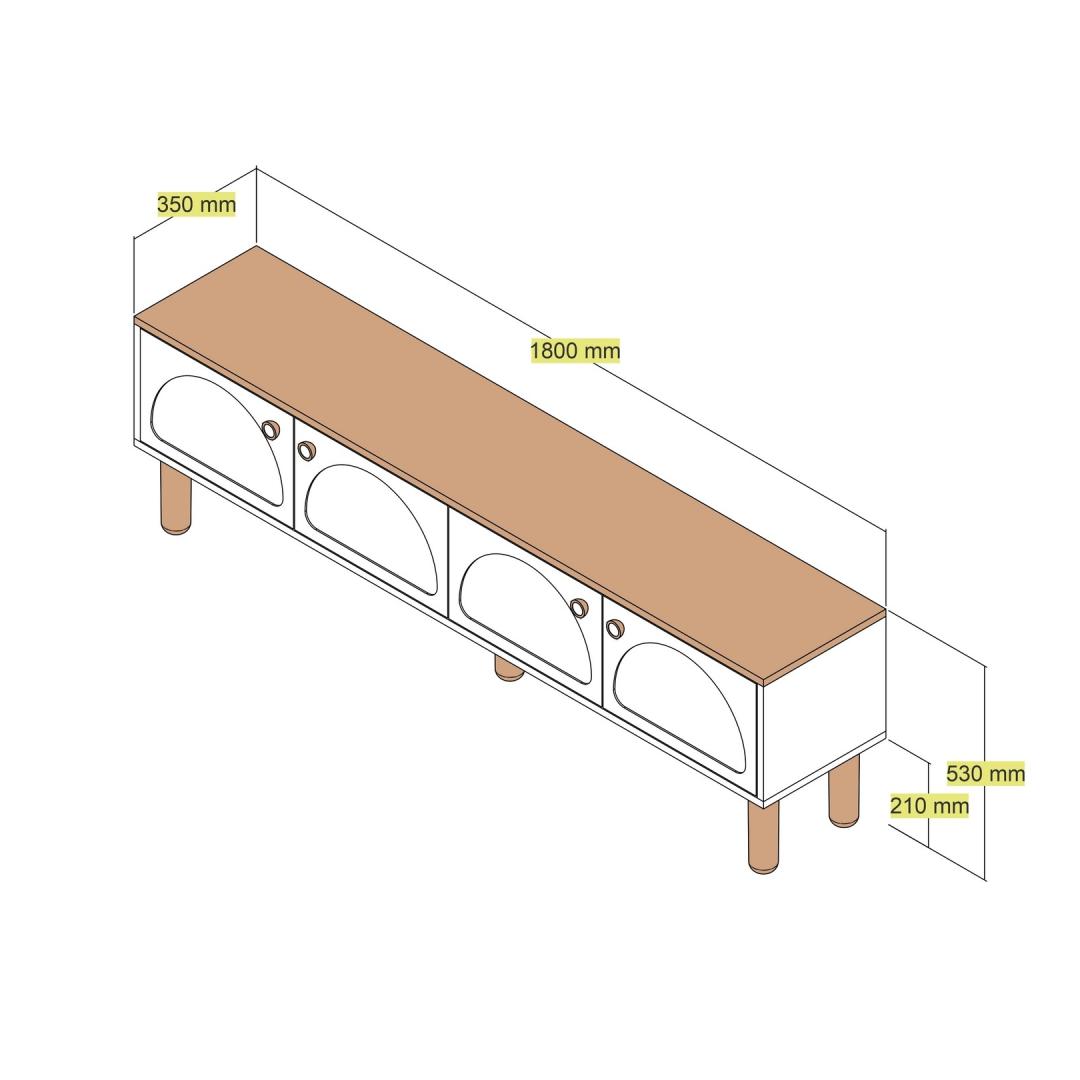 Oma mõõtmetega 180 cm laius, 53 cm kõrgus ja 35 cm sügavus on see telerikapp ideaalne fookuspunkt teie meelelahutusruumi jaoks. Selle puhtad jooned ja kaasaegne disain tõmbavad pilku ja loovad teie ruumi stiilse keskse punkti.