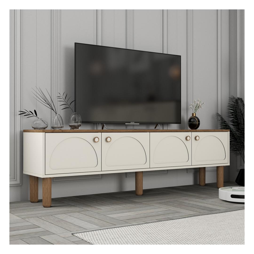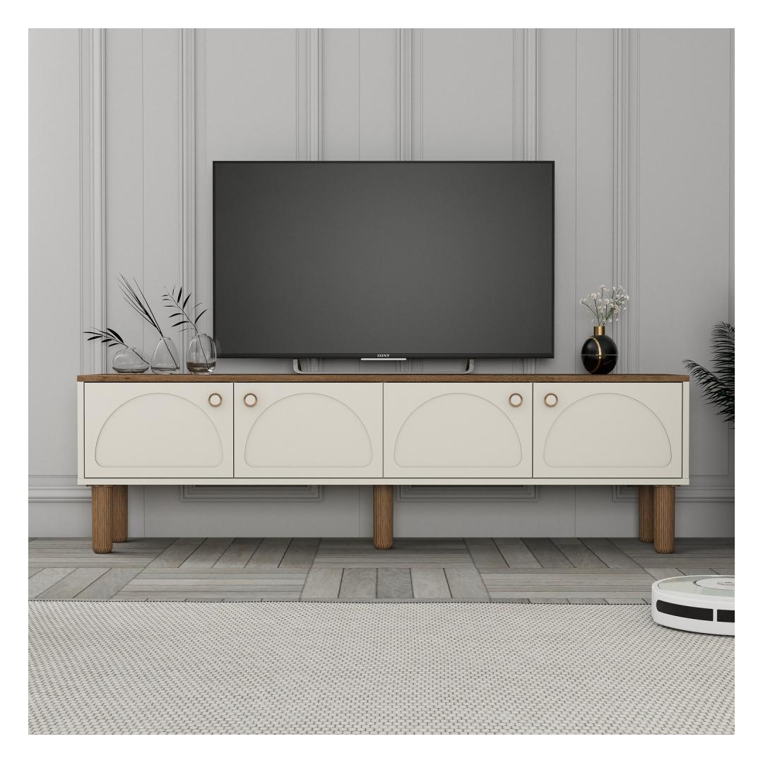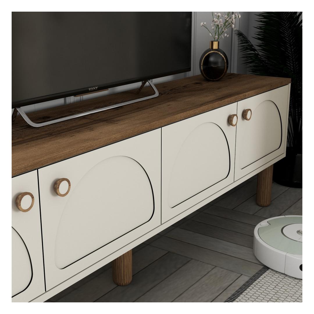 Muuda oma elutuba stiilseks ja organiseeritud ruumiks meie uimastava teleriga. See 100% melamiiniga kaetud puitlaastplaadist valmistatud teleriba ei ole mitte ainult vastupidav, vaid ka uskumatult elegantne ja kaasaegne. Kreemjas värv lisab igasse ruumi elegantsi, muutes selle ideaalseks täienduseks teie kodu sisustusele.