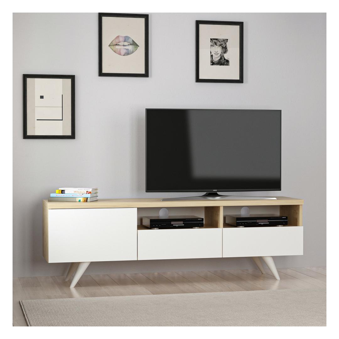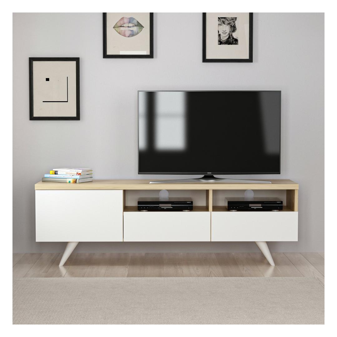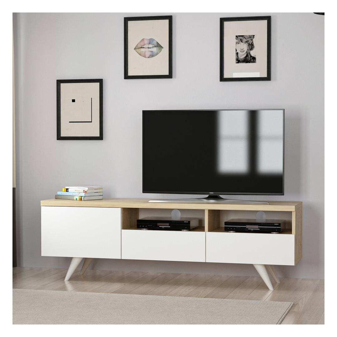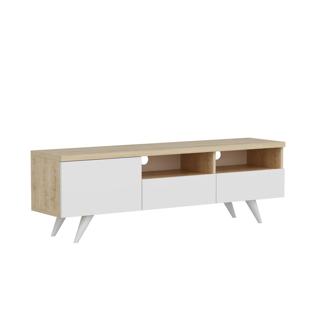 Meie televiisoripuldi elegantse ja minimalistliku disaini inspiratsiooniks on ajatu skandinaavia stiil. Puhaste joonte, naturaalse tammepuidust viimistluse ja kontrastsete valgete aktsentidega sulandub see ese vaevata mis tahes sisekujundusega, lisades teie eluruumile elegantsi ja rafineeritust.