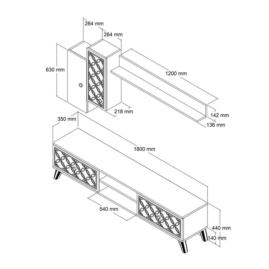 Lihtsa disaini ja modernse kontseptsiooniga on see telerikapp ideaalne täiendus igasse koju. 4 mm CNC-reljeef lisab ainulaadse puudutuse, samas kui plastjalad tagavad stabiilsuse ja toe. Kapp sisaldab seinale paigaldatavat riiulit ja kappe, mis pakuvad piisavalt hoiuruumi, muutes selle ideaalseks meelelahutuse tarvikute organiseerimiseks.