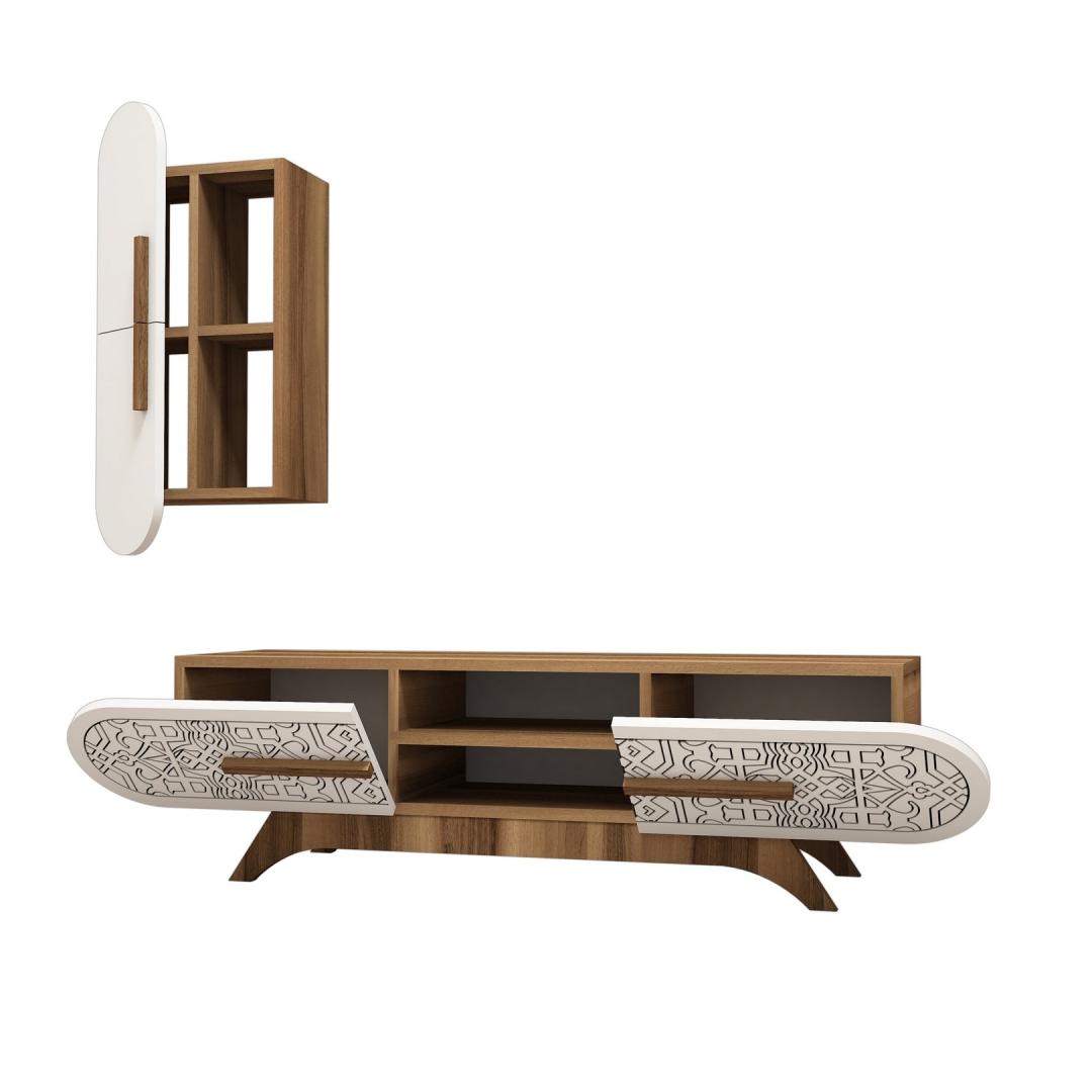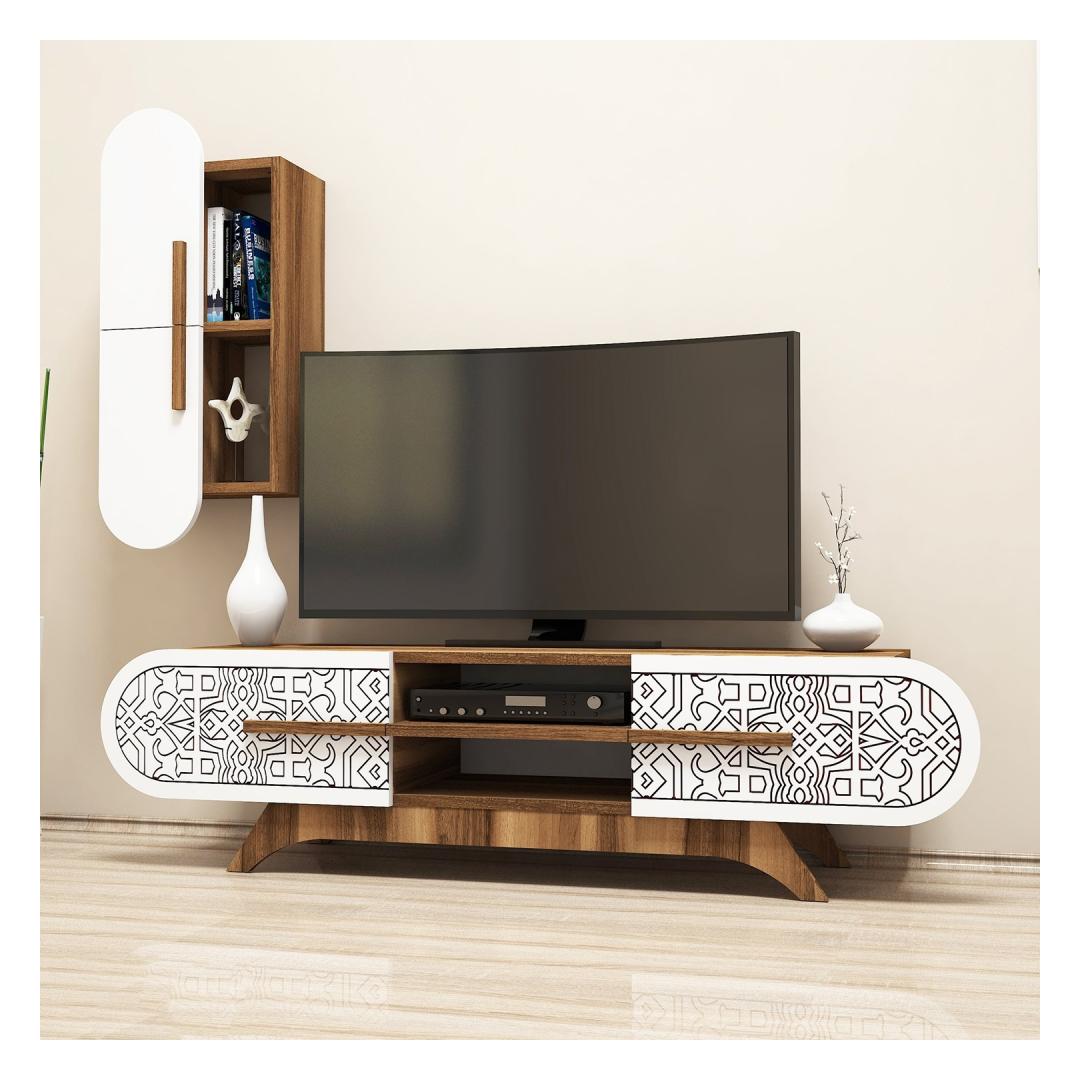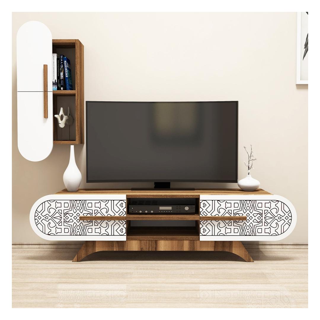 Pähklipuu ja valgete värvide kombinatsioon annab sellele televiisorile kaasaegse ja rafineeritud välimuse. Kontrastsed värvid lisavad elegantsi igasse ruumi, muutes selle ideaalseks täienduseks teie moodsale kodule.