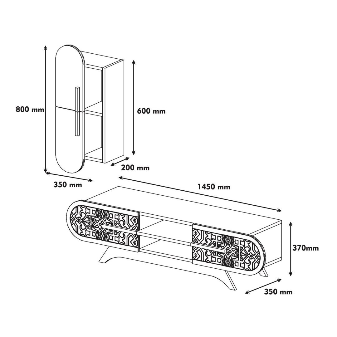 Meie televiisor on valmistatud 100% melamiiniga kaetud puitlaastplaadist, mis tagab vastupidavuse ja pikaealisuse. 18 mm paksus lisab seadmele tugevust, mistõttu sobib see ideaalselt teie televiisori ja muude oluliste meelelahutusvahendite hoidmiseks. Seade on varustatud arvukate riiulitega, mis pakuvad piisavalt ruumi teie dvd-mängijale, mängukonsoolidele ja muule.