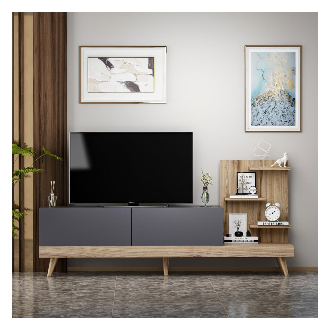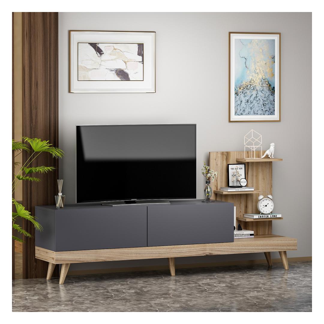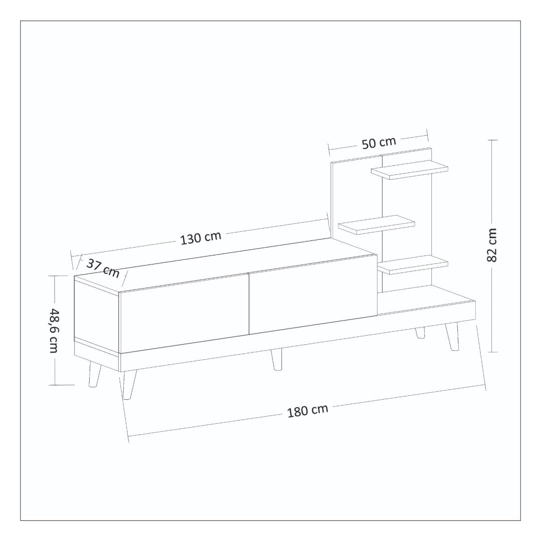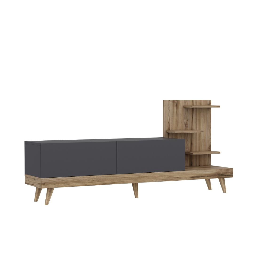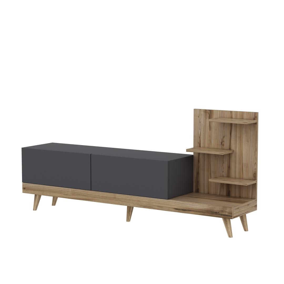 See skandinaavia kontseptsiooni järgi disainitud teleripult õhkab lihtsust ja elegantsi. Antratsiidi ja pähklipuu värvi kombinatsioon lisab teie eluruumile elegantse ja minimalistliku välimuse, mis avaldab kindlasti muljet.