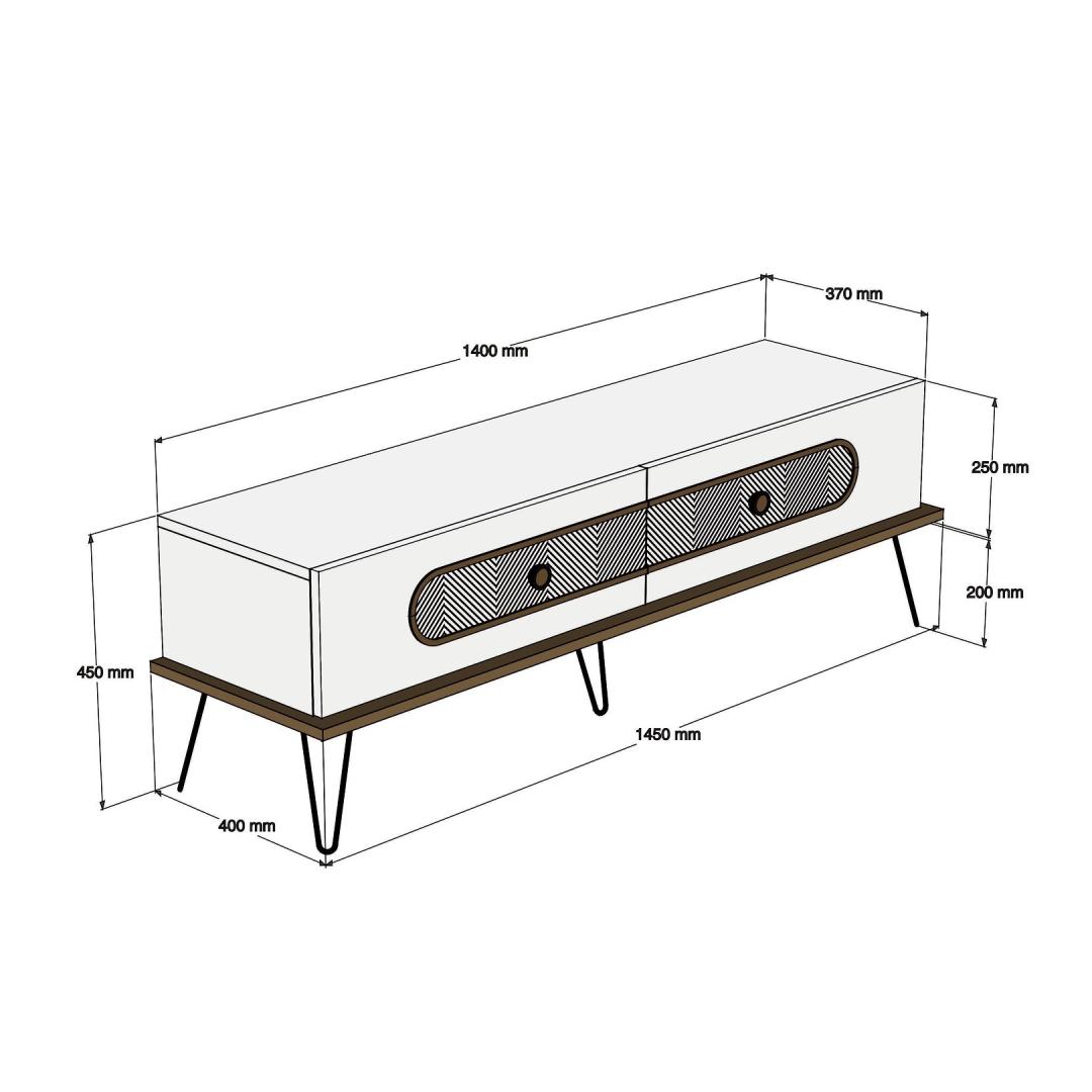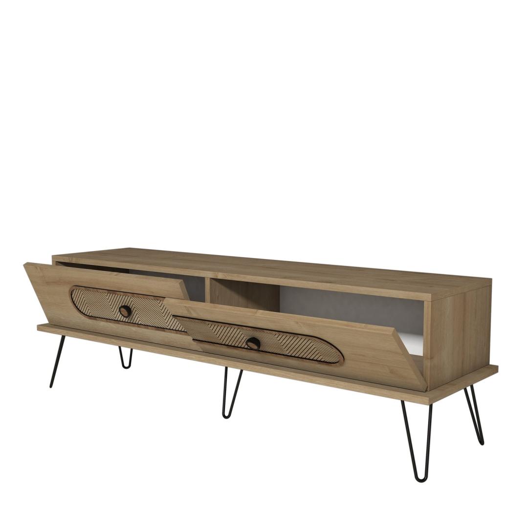 Valmistatud 100% melamiiniga kaetud puitlaastplaadist, see televiisoripult on ehitatud kestma. 18 mm paksus tagab tugevuse ja stabiilsuse, samas kui 4 mm cnc-reljeef lisab unikaalse ja kunstilise puudutuse. Metallist jalad pakuvad suurepärast tuge ja lisavad üldisele disainile kaasaegset hõngu.
