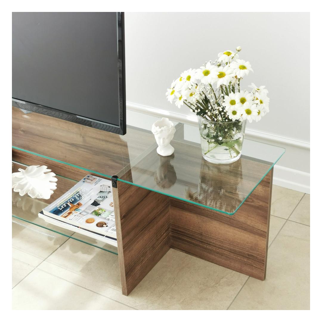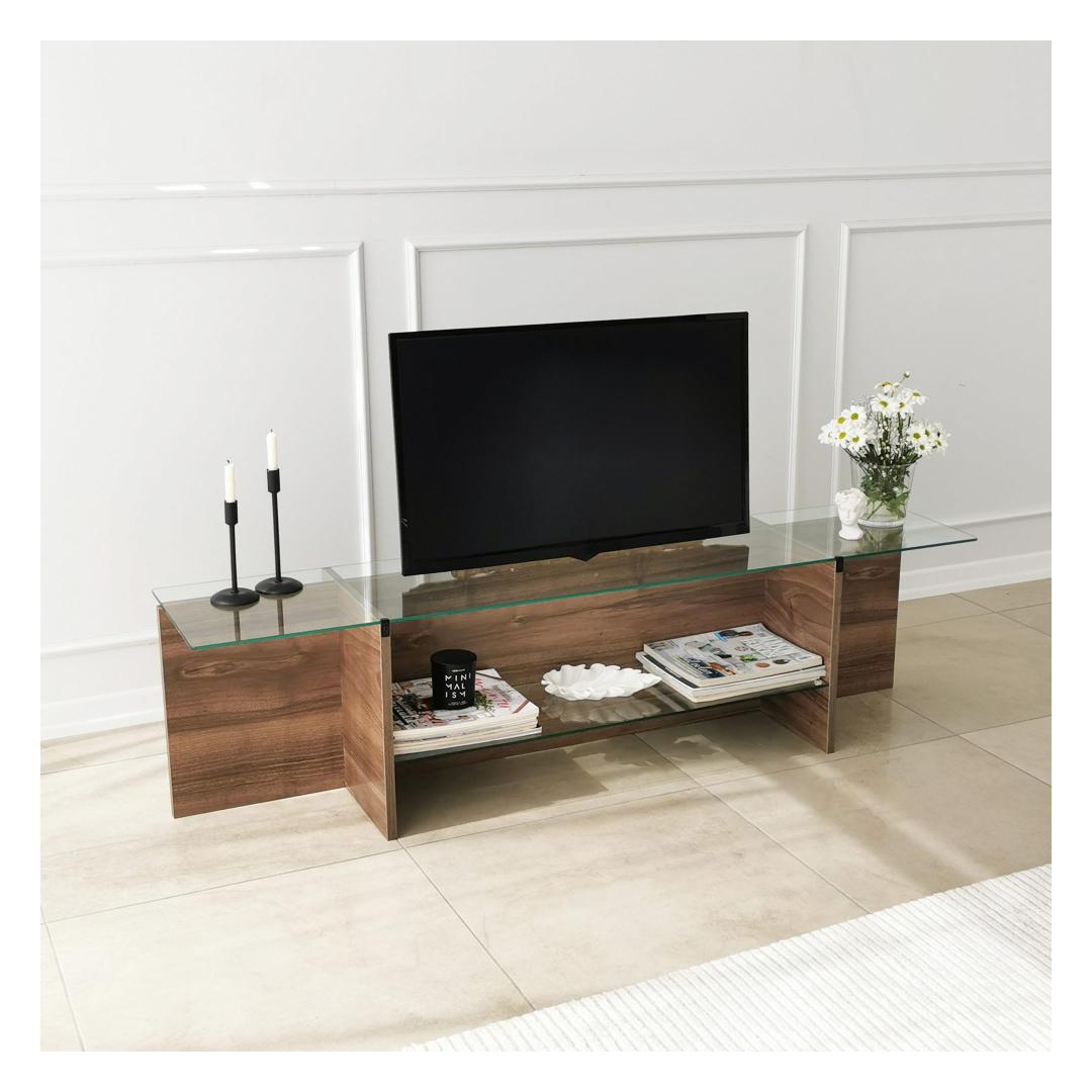 Täiendada oma eluruumi elegantsi ja stiiligaTutvustame teile meie peen telerite statiivi, mis on mõeldud teie elutoa muutmiseks elegantseks õhkõrnaks. Valmistatud ülima hoole ja tähelepanuga detailidele, see uimastav ese võlub kindlasti teie meeled ja tõstab teie kodu sisustuse uutesse kõrgustesse. Võrratu ilu ja vastupidavusMeie 100% karastatud klaasist valmistatud televiisoripult õhkab ajatut elegantsi. Kerge ja sile pind mitte ainult ei lisa teie ruumile luksust, vaid tagab ka pikaajalise vastupidavuse. Tänu pähklipuidust värvile sulandub see statiiv vaevata mis tahes interjööriga, luues harmoonilise õhkkonna, mis jätab teie külalised imestama. Vabastage oma sisemine disainerVõtke meie televiisoripuldiga omaks skandinaavia minimalismi ja lihtsuse kontseptsioon. Selle puhtad jooned ja minimalistlik disain võimaldavad teil oma televiisorit ja muid meediaseadmeid segadusteta esitleda. 100% melamiinkattega puitlaastplaadist raam lisab sooja ja rafineeritust, muutes selle ideaalseks täienduseks igasse moodsasse eluruumi. Tehnilised üksikasjad:100% karastatud klaas tagab võrratu ilu ja vastupidavuseRaam on valmistatud 100% melamiiniga kaetud puitlaastplaadist, mis lisab tugevust.Paksus: 18 mm stabiilsuse ja tugevuse tagamiseksLaius: 158 cm, kõrgus: 40 cm, sügavus: 35 cm, mis tagab piisava hoiuruumi.Pähkli värvi(d) ajatu ja mitmekülgse välimuse tagamiseksTõstke oma kodu kaunistust juba tänaÄrge rahulduge tavalise asjaga, kui teil on võimalik saada erakordne. Meie televiisoriga saate luua eluruumi, mis peegeldab teie unikaalset stiili ja isiksust. Uuendage oma kodu sisekujundust juba täna ja kogege elegantsi ja funktsionaalsuse täiuslikku segu. Tellige kohe ja laske oma elutoast saada kõigi kadedus! Värv: Walnut