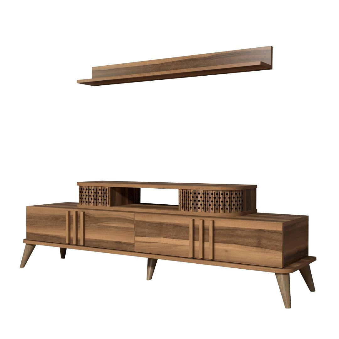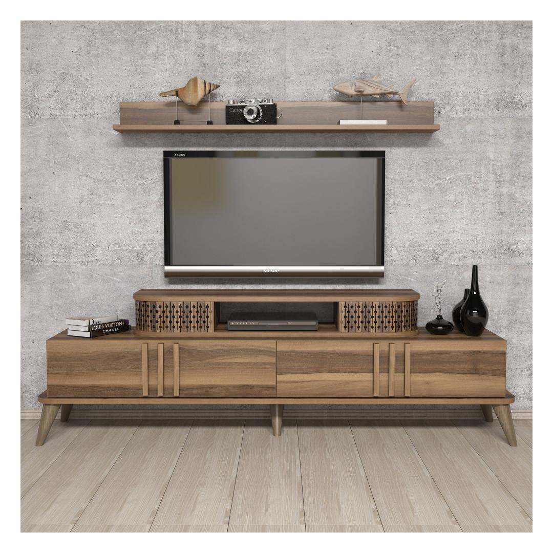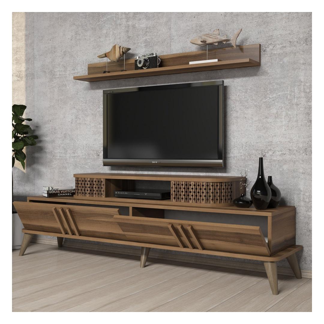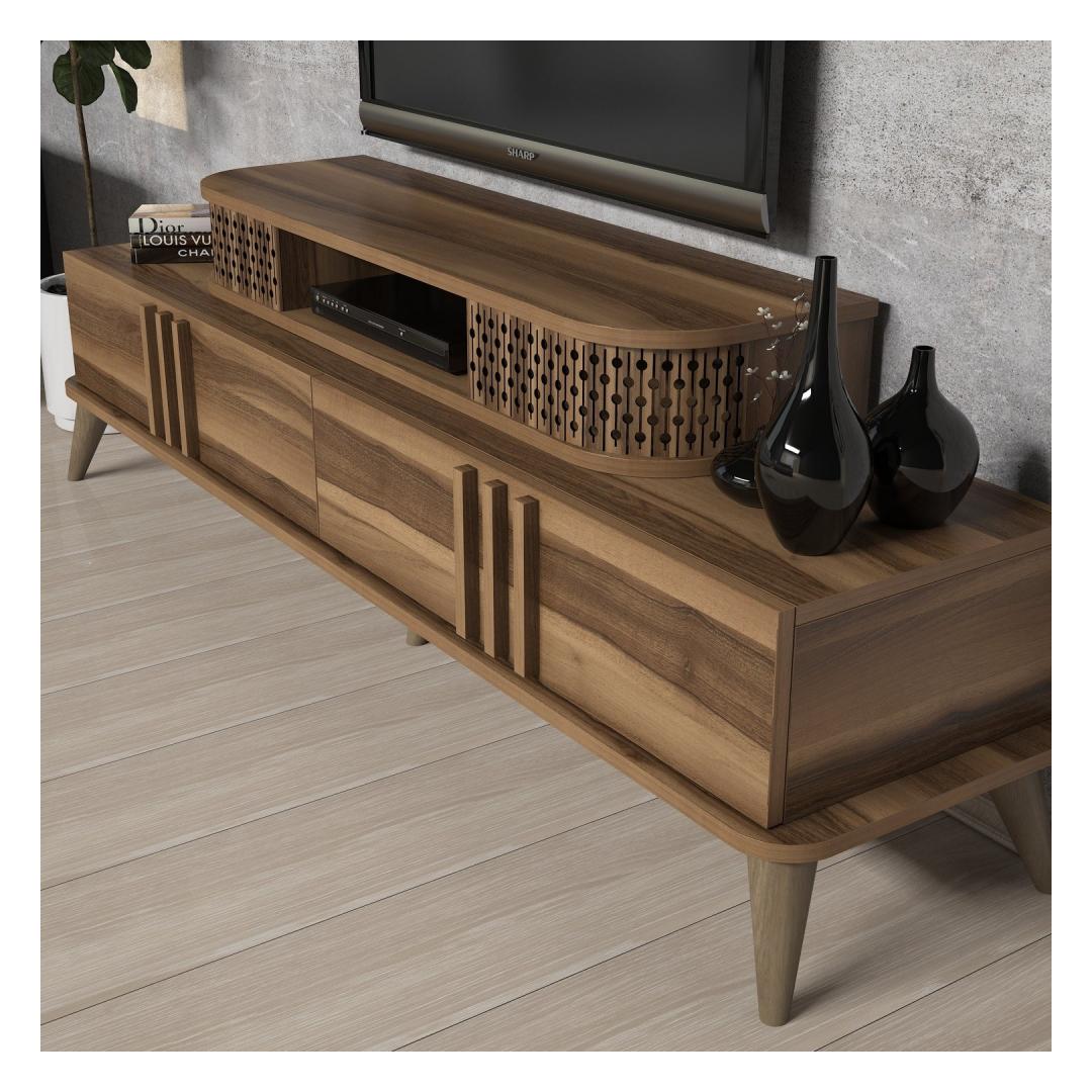 Suurendage oma kodu ilu meie televiisoriga, mis on hoolikalt valmistatud, et lisada elegantsi ja elegantsust. Selle stiilne disain ja pähklipuidust värv täiendab vaevata mis tahes sisekujundust, muutes selle teie elutoa keskpunktiks.