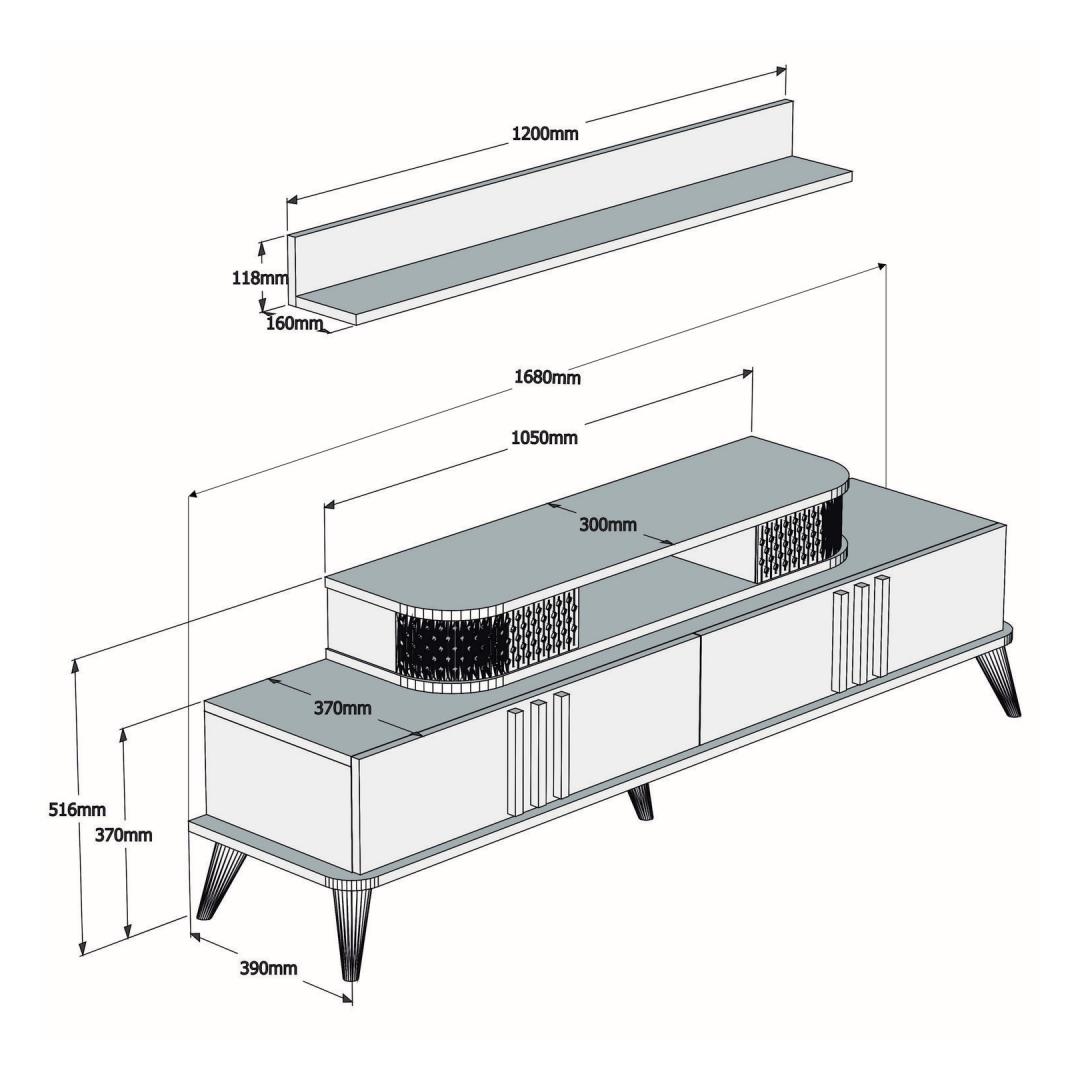 See teler on valmistatud 100% melamiiniga kaetud puitlaastplaadist, mis on ehitatud kestma. 18 mm paksus tagab tugevuse ja stabiilsuse, pakkudes usaldusväärset platvormi teie televiisorile ja teistele meediaseadmetele.