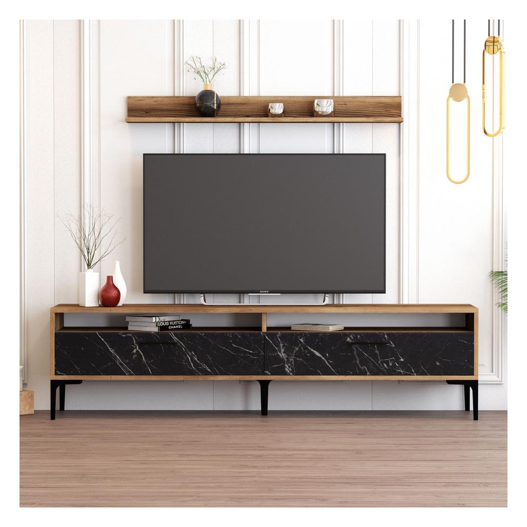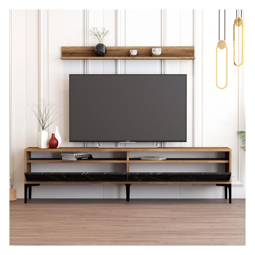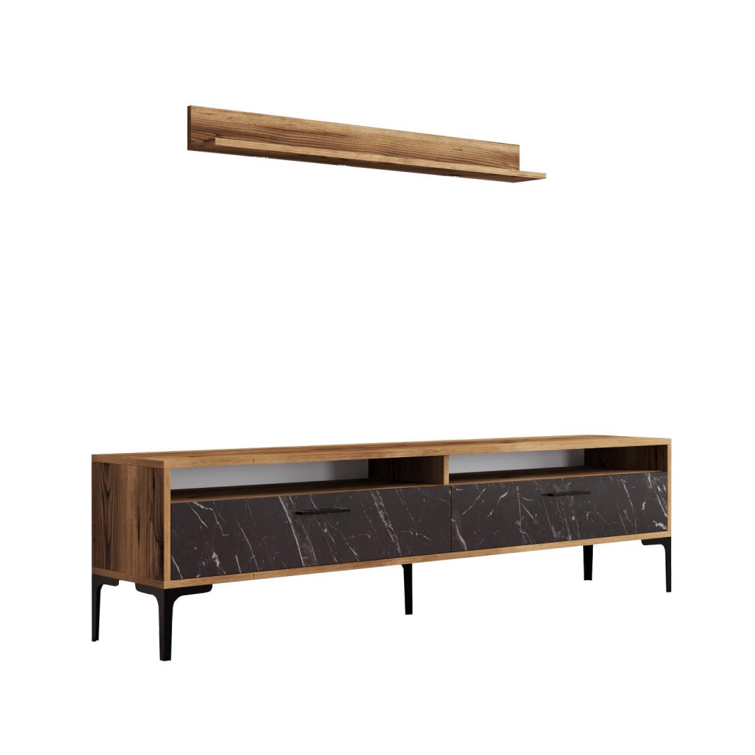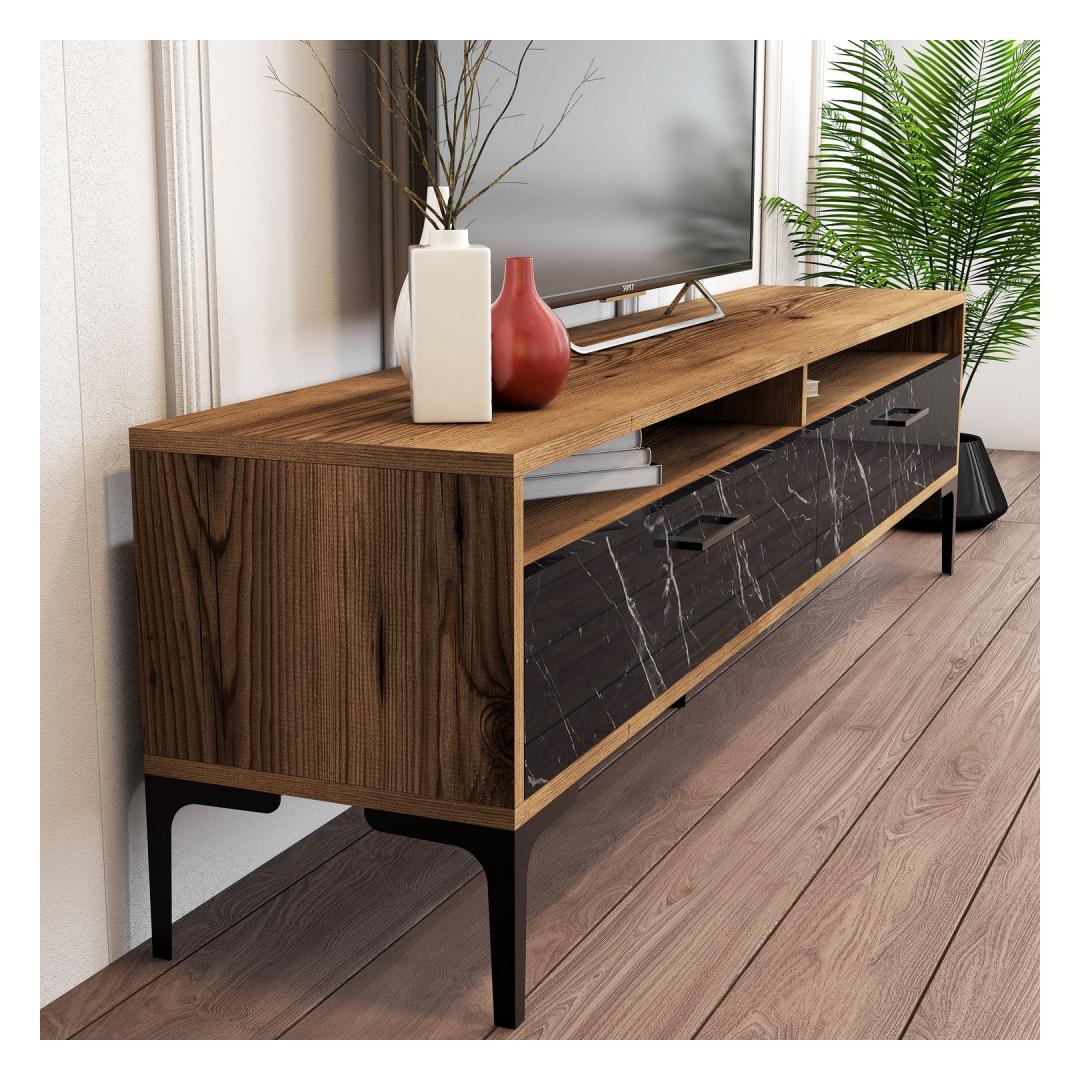 TV laud Istanbul - Walnut, Black Marble