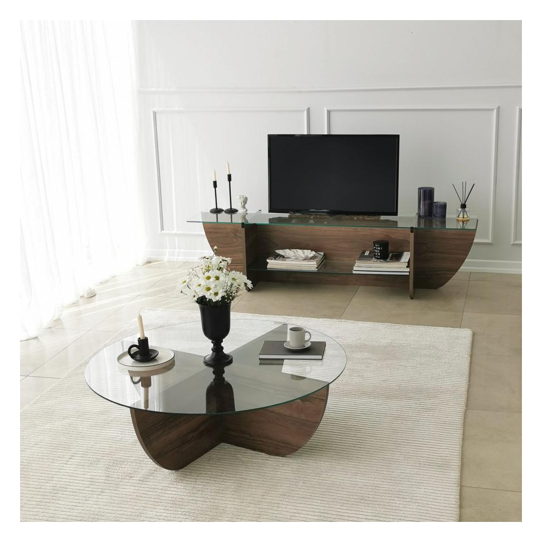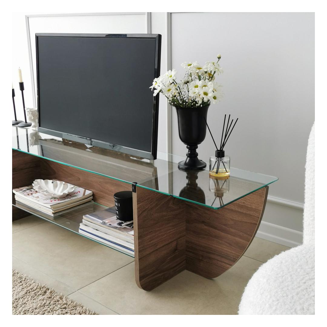 Välistage oma eluruumi elegantse ja funktsionaalse teleripuldigaMuuda oma elutuba stiilseks ja kutsuvaks ruumiks meie peen teleripuldi abil. See ülima täpsusega valmistatud teleripult ühendab funktsionaalsuse ja elegantsi sujuvalt, muutes selle ideaalseks täienduseks igasse moodsasse koju. Kogege võrratut vastupidavust ja turvalisustValmistatud 100% karastatud klaasist, tagab meie televiisoripult võrratu vastupidavuse ja ohutuse. Karastatud klaas mitte ainult ei lisa teie elutuppa rafineeritust, vaid pakub ka tugevat ja turvalist platvormi teie televiisorile. Sukelduge skandinaavia võluesseVõtke meie telerialusega omaks skandinaavia disaini ajatu ilu. Puhtad jooned, minimalistlik esteetika ja soe pähklipuu värv(id) sobivad vaevata kokku mis tahes sisekujundusega, luues hubase ja kutsuva atmosfääri. Maksimeerida oma hoiuruumiSuuremõõtmeline teleripult pakub piisavalt ruumi kõigi teie meelelahutusvahendite jaoks. 18 mm paksune melamiinkattega puitlaastplaadi raam tagab erakordse tugevuse ja stabiilsuse, tagades, et teie asjad on turvaliselt hoiul. Tehnilised üksikasjad:Toote tüüp: Toode on mõeldud kasutamiseks, kui see ei ole vajalik, kuid see on võimalik: Teleri statiivRaami materjal: Materjal: 100% melamiiniga kaetud puitlaastplaatKlaasimaterjal: Klaas: 100% karastatud klaasPaksus: 18 mmLaius: 158 cmKõrgus: 40 cmSügavus: 35 cmVärv: PähkelpuuTäienda oma elutuba meie teleripuldiga ja loo ruum, mis õhkab elegantsust ja funktsionaalsust. Tellige kohe ja tõstke oma kodu sisustus uutesse kõrgustesse! Värv: Walnut