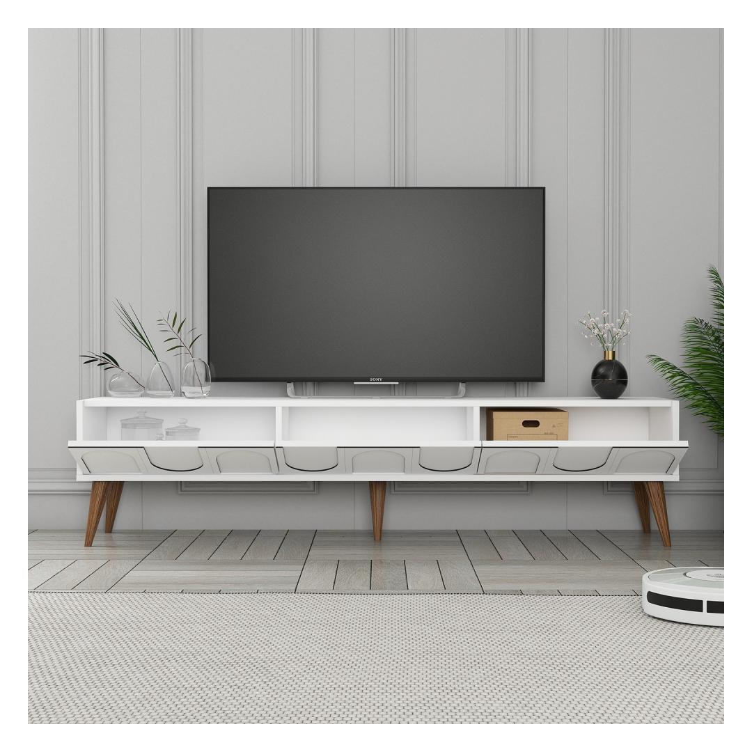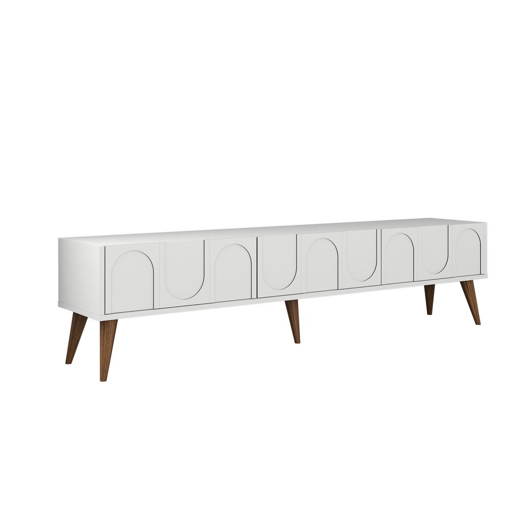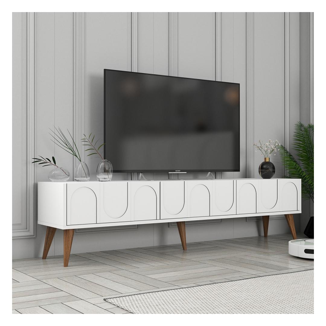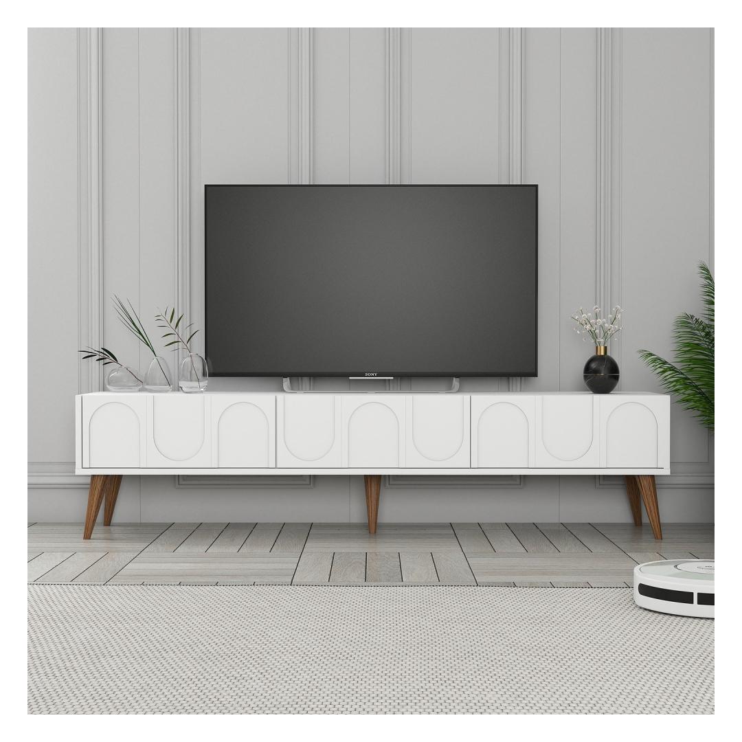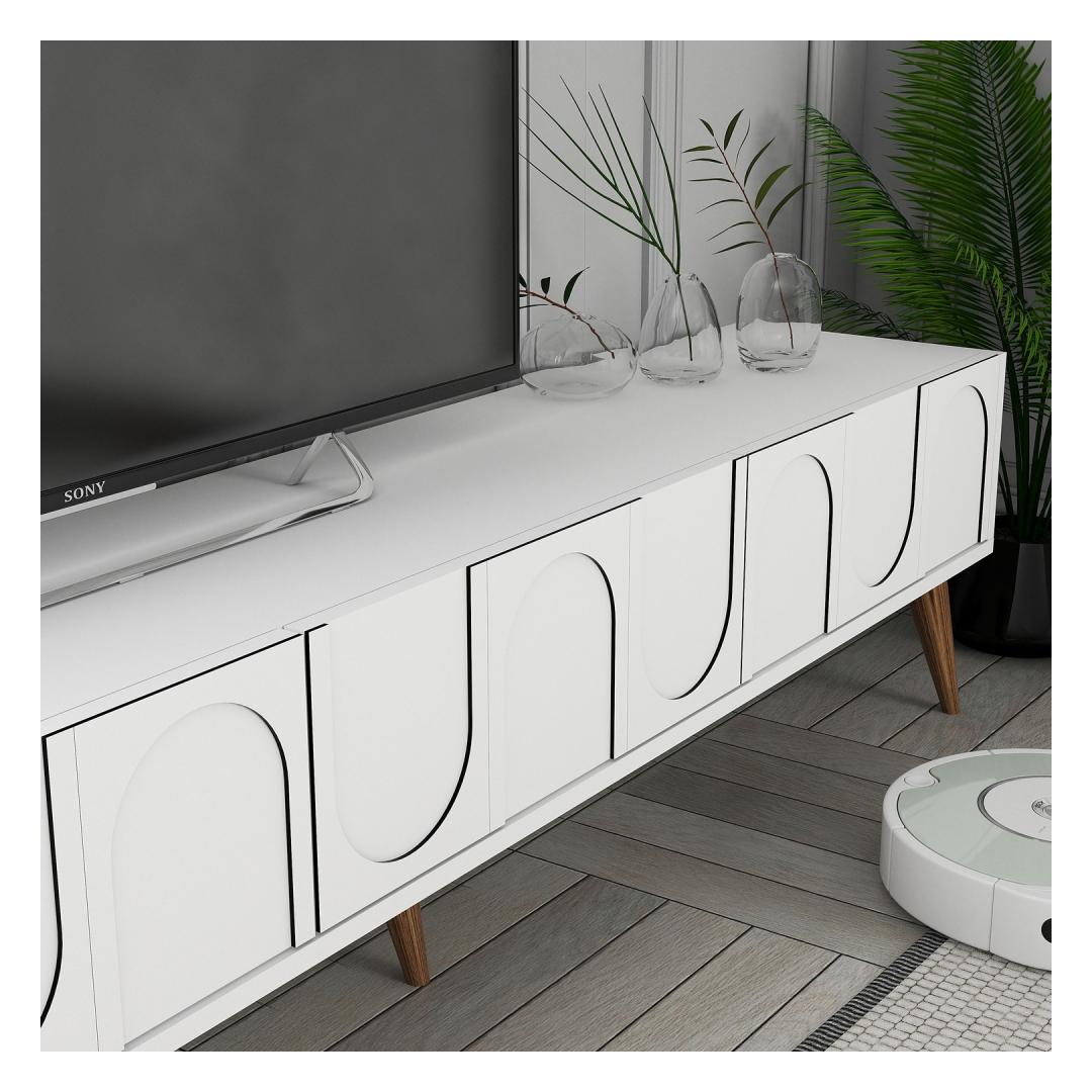 Oma puhaste joonte ja kaasaegse disainiga tõstab see telerikapp kindlasti teie eluruumi välimust. Valge ja pähklipuidust värvid sobivad sujuvalt kokku mis tahes sisustusstiiliga, alates modernsest kuni traditsioonilisuseni. Lisage oma koju rafineeritust ja avaldage külalistele muljet selle stiilse mööbliesemega.