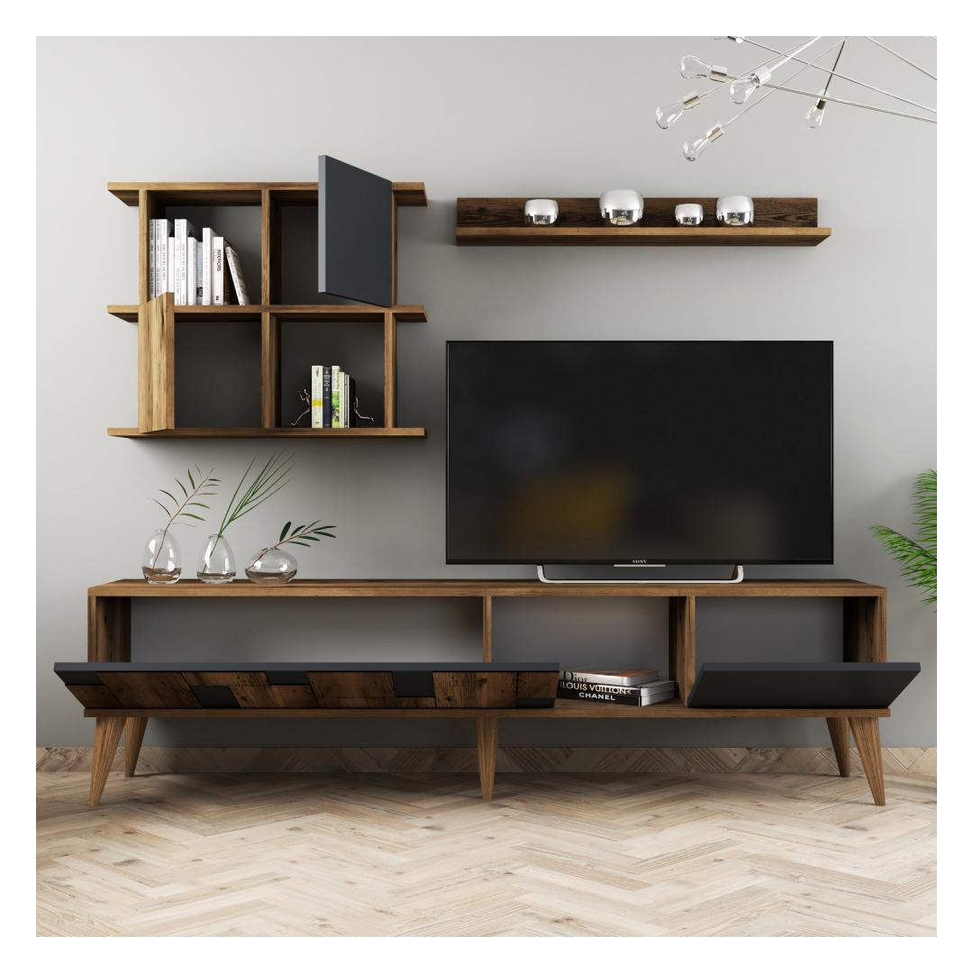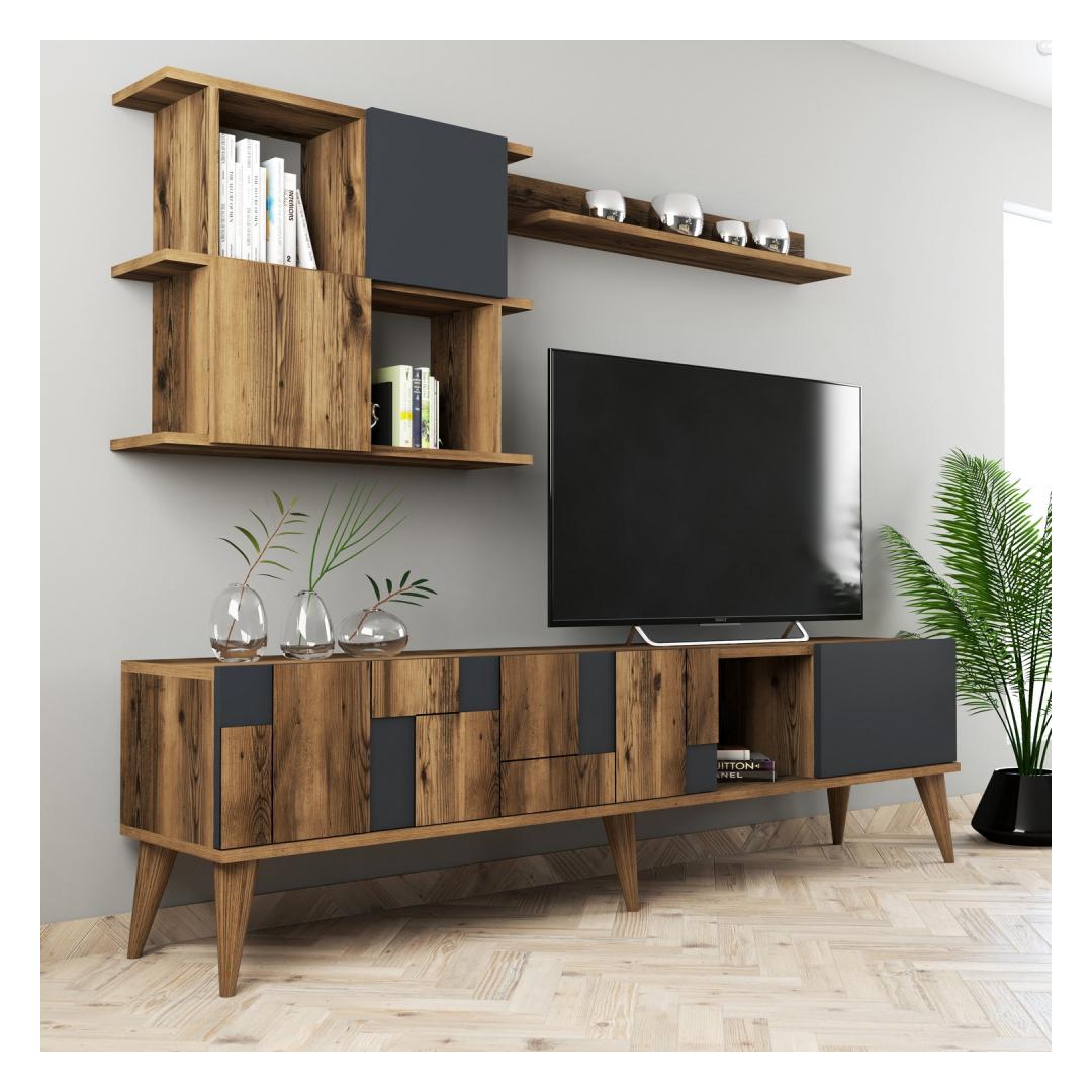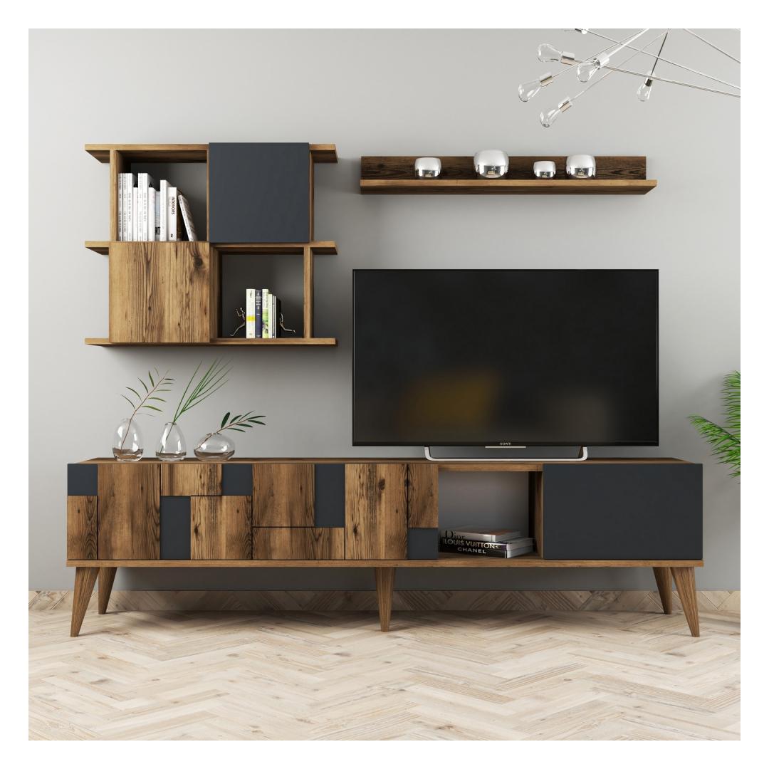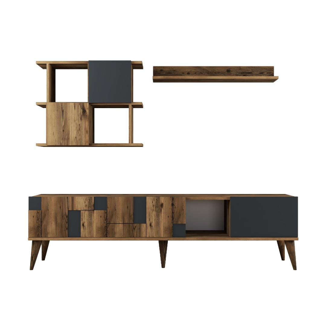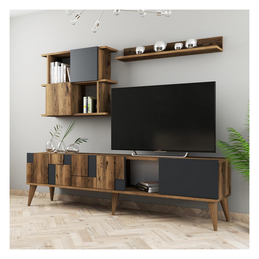 TV-üksust saab kinnitada seinale, mis võimaldab teil luua õmblusteta ja elegantse välimuse. Pähklipuu ja antratsiidi värvikombinatsioon lisab igasse ruumi rafineeritust, muutes selle mitmekülgseks täienduseks teie kodu sisustusele.