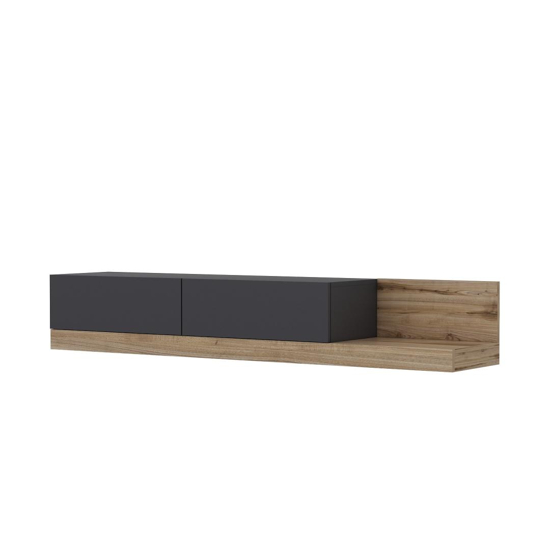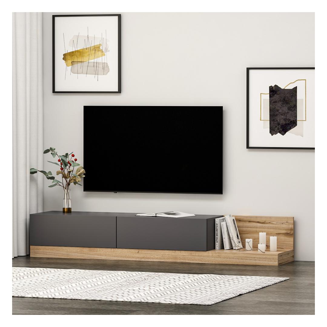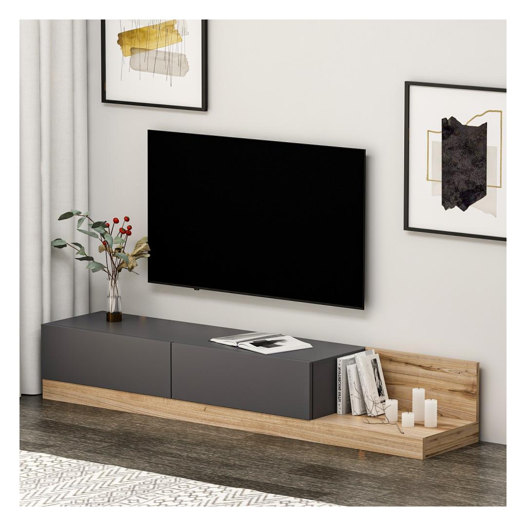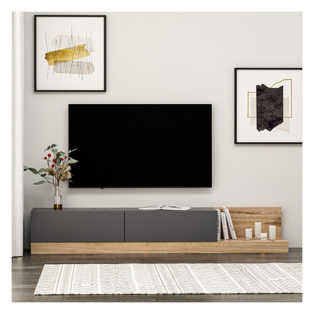 Teleri statiivil on stiilne ja kaasaegne disain, mis täiendab vaevata iga sisekujundust. Antratsiidi ja pähklipuu värvi kombinatsioon lisab sellele elegantsi, muutes selle teie elutoas silmapaistvaks esemeks.