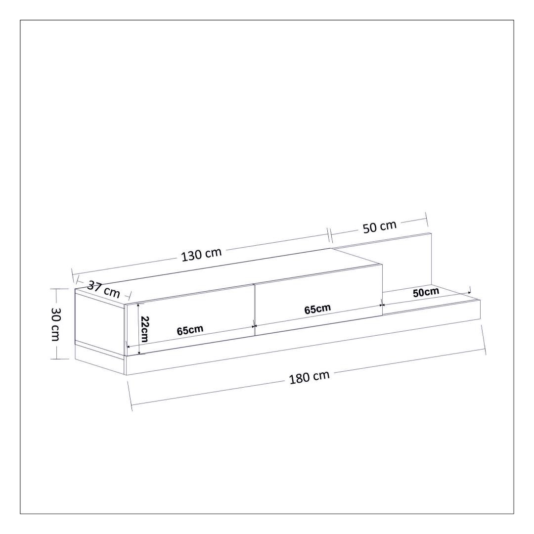 180 cm laiuse, 30 cm kõrguse ja 37 cm sügavusega telerialus pakub rohkelt hoiuruumi kõigile teie meelelahutusvahenditele. Alates mängukonsoolidest kuni dvd-deni saate oma asjad kenasti organiseerida ja välja panna, hoides oma elutoa segadusteta.