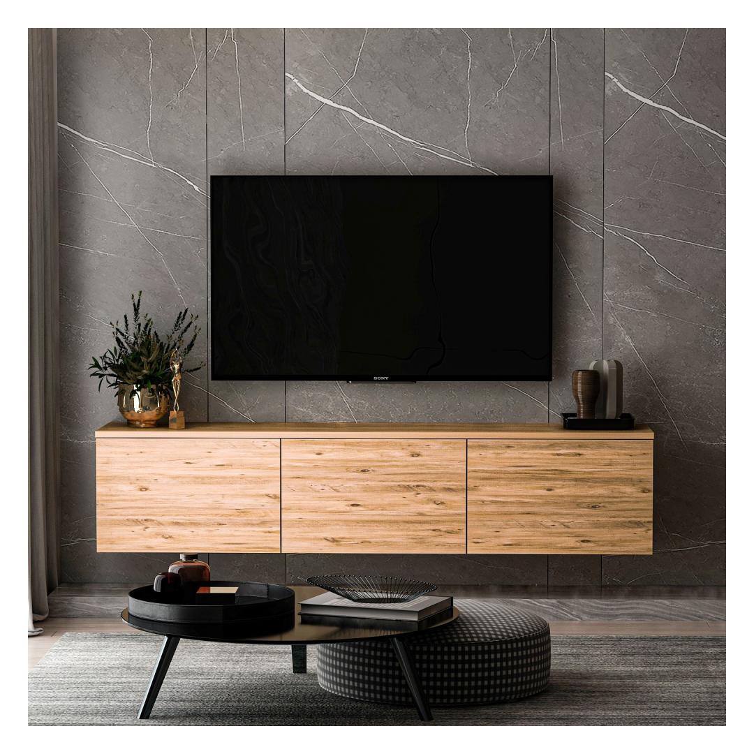 Muuda oma elutuba hubaseks ja stiilseks pelgupaigaks meie kauni Atlantic Pine värvi telerialusega. Valmistatud 100% melamiinkattega puitlaastplaadist, on see telerialus mitte ainult vastupidav, vaid kiirgab ka sooja ja kutsuvat võlu, mis tõstab sinu ruumi ilmet.