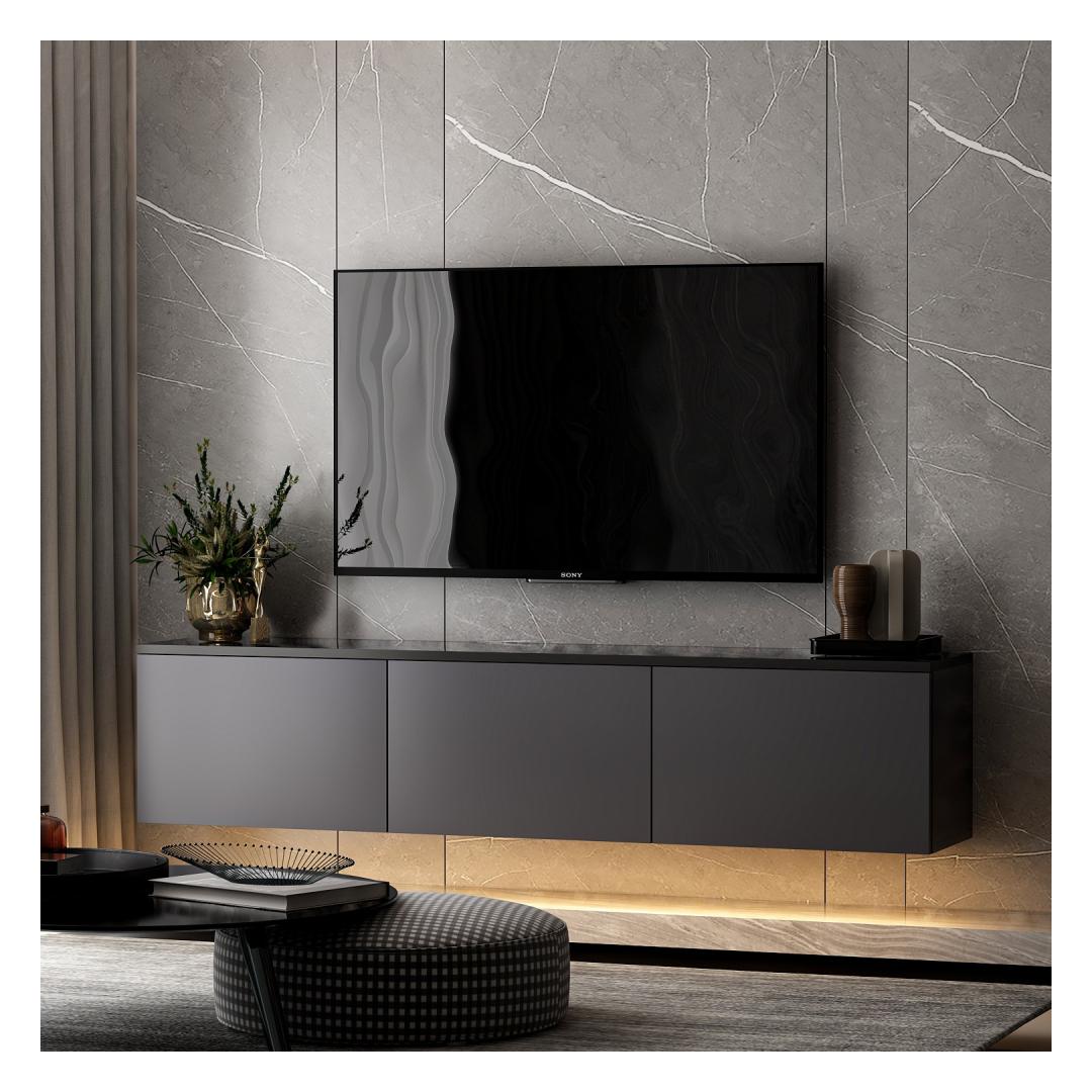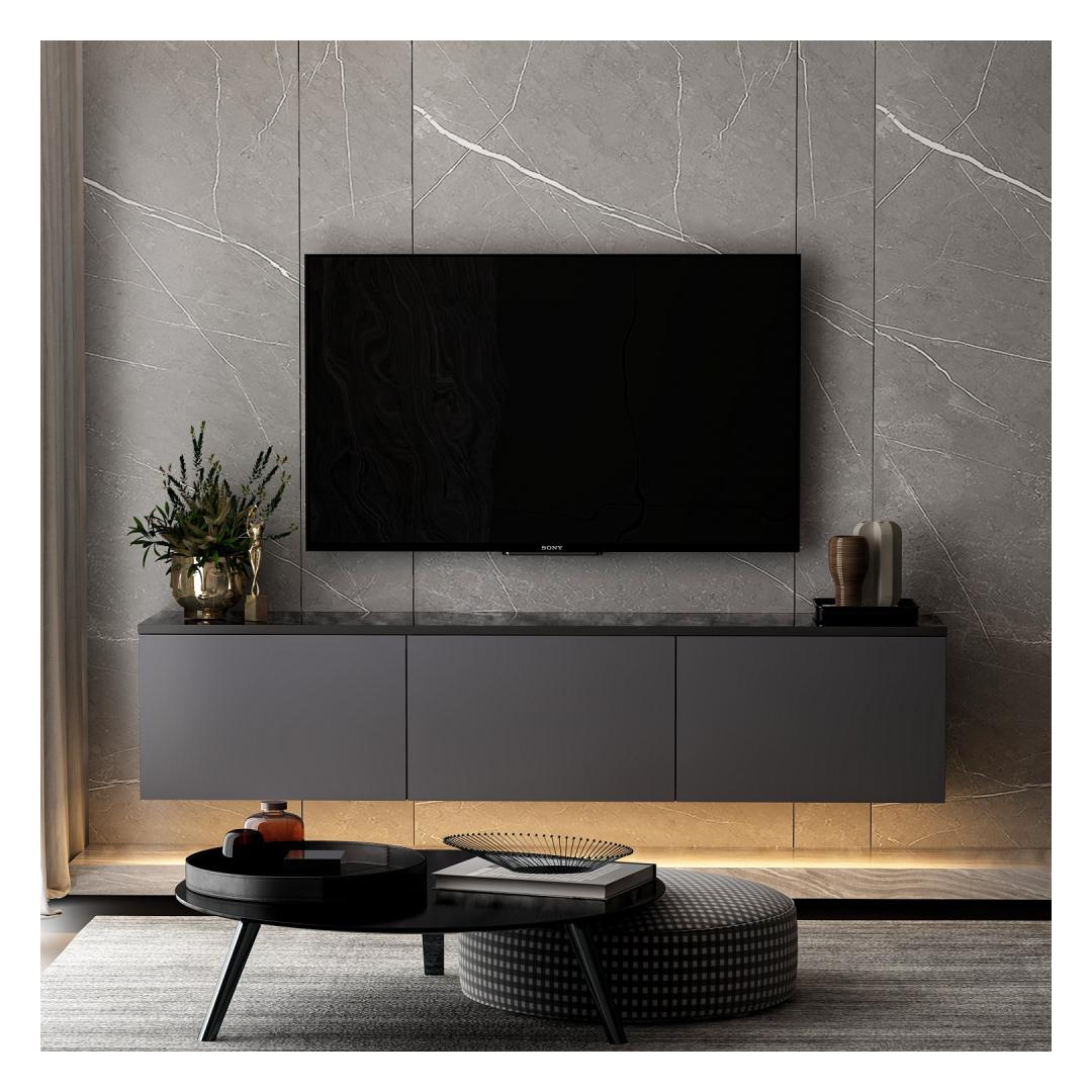 Puhtad jooned ja kaasaegne disain teevad sellest telerialusest ideaalse lisandi igasse kaasaegsesse koju. Antratsiitvärv lisab rafineeritust, samas kui arvukad riiulid pakuvad piisavalt hoiuruumi kõigi sinu meelelahutuse tarvikute jaoks.