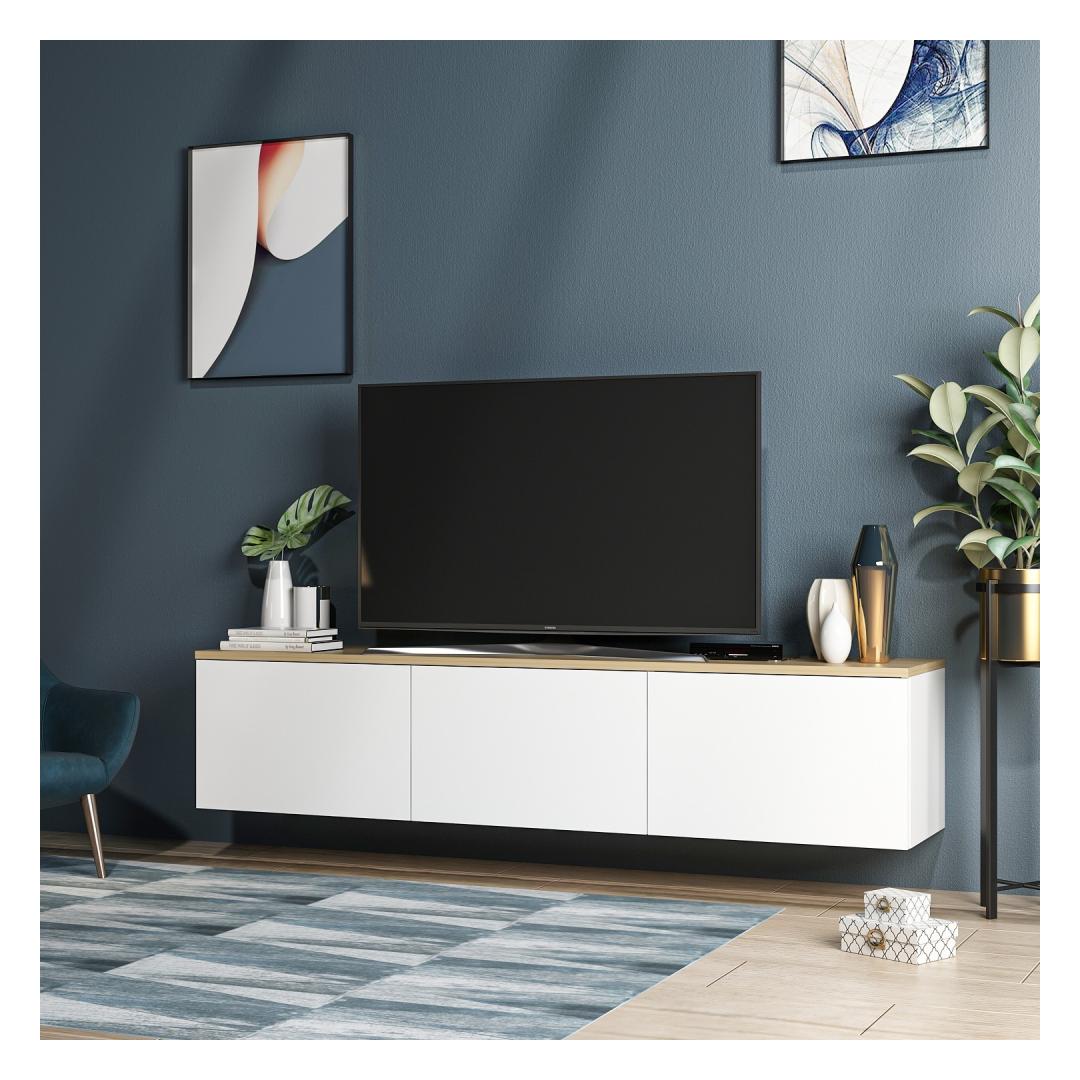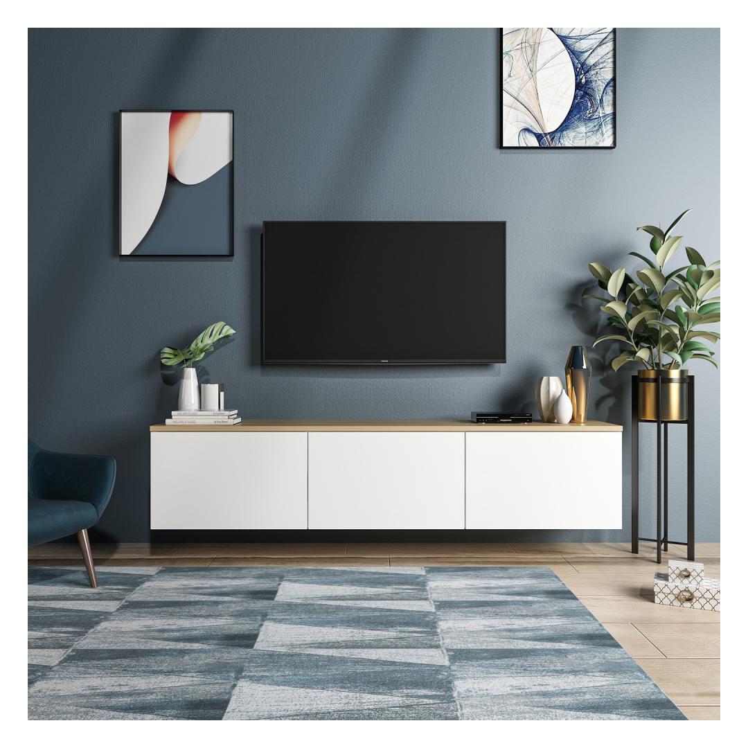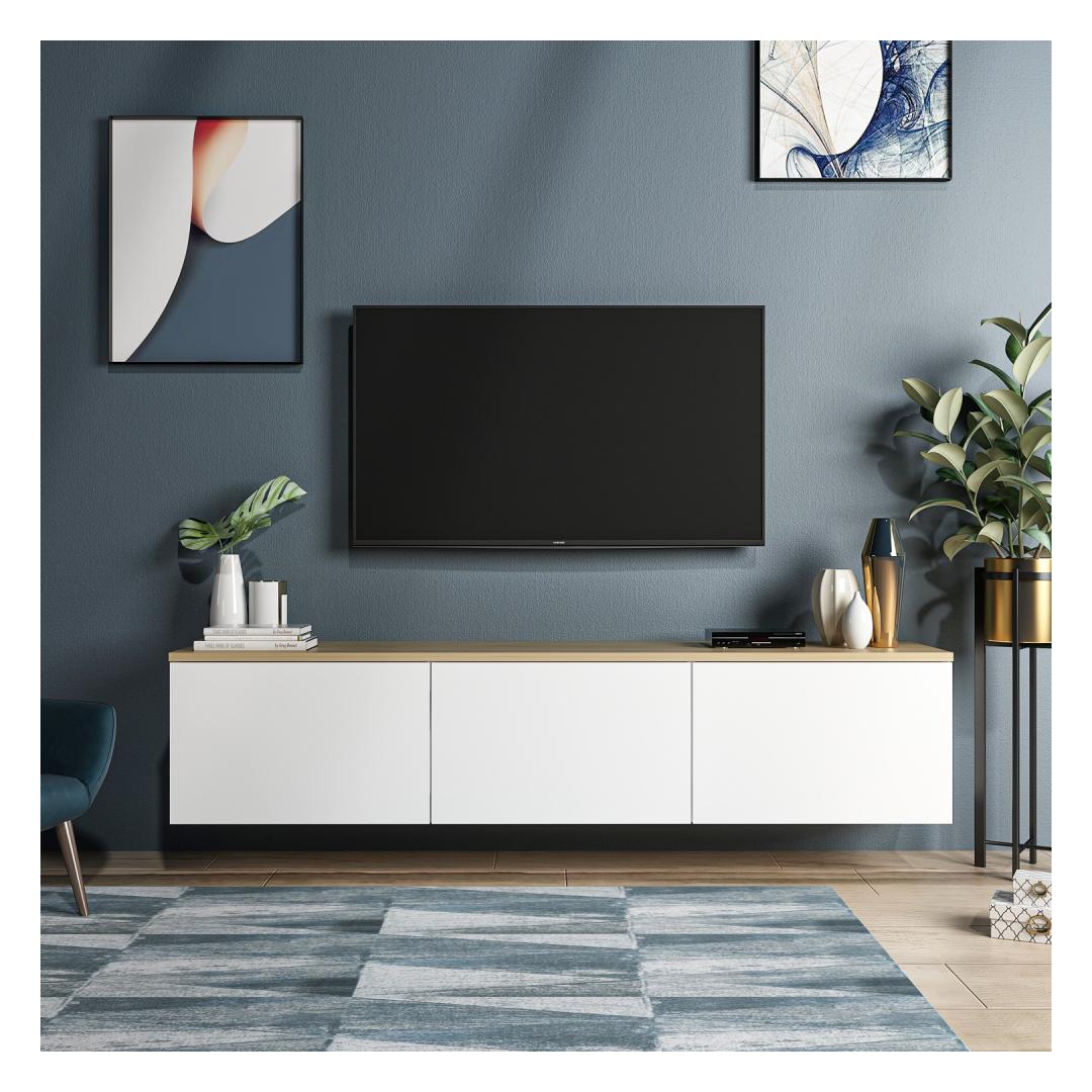 Oma puhaste joonte ja kaasaegse disainiga tõstab see telerialus koheselt iga ruumi esteetikat. Valge ja tamme värvi kombinatsioon annab sellele ajatu võlu, mis sobib igasuguse sisustustootega.