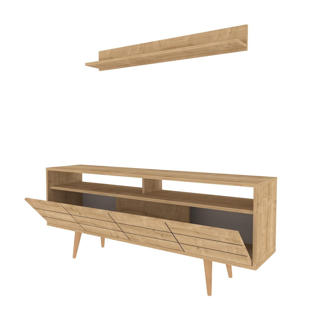 Looge stiilne ja rafineeritud elutuba meie televiisorigaMuutke oma elutuba elegantseks ja stiilipäraseks meie uimastava televiisoriga. See ülima täpsusega valmistatud ja täiuslikuks disainitud teler on moodsa rafineerituse kehastus. Kogege võrratut vastupidavust ja kvaliteetiValmistatud 100% melamiiniga kaetud puitlaastplaadist, on see telerikapp valmistatud kestma. 18 mm paksus tagab suurepärase tugevuse ja stabiilsuse, mis teeb sellest usaldusväärse lisa teie koju aastateks.Lisandage safiirivärviga rikkalikkustTeler on saadaval lummavas safiirivärvuses, mis lisab teie eluruumile külluslikkust. Rikkalik ja elujõuline toon loob lummava fookuspunkti, muutes selle ideaalseks täienduseks igale kaasaegsele või traditsioonilisele sisekujundusele. Rikkalik hoiuruum teie meelelahutusvahendite jaoksLaius 160 cm, sügavus 35 cm ja kõrgus 64 cm. 5cm, pakub see telerikapp piisavalt hoiuruumi kõigile teie meelelahutuslikele esmatähtsatele esemetele. Alates dvd-dest ja mängukonsoolidest kuni puldi ja helisüsteemini on kõik kenasti organiseeritud ja kergesti kättesaadav. Tõhustage oma vaatamiskogemustSee funktsionaalsust silmas pidades disainitud telerikapp pakub teie televiisorile ideaalset platvormi. Kõrgendatud statiiv tagab optimaalse vaatenurga, mis võimaldab teil oma lemmiksaateid ja -filme mugavalt nautida. Tehnilised üksikasjad:Materjal: materjal: 100% melamiiniga kaetud puitlaastplaatPaksus: 18mmLaius: 160cmSügavus: 35cmKõrgus: 64,5cmVärv: SapphireUuendage oma elutuba meie televiisoriga ja looge ruum, mis õhkab stiili, rafineeritust ja funktsionaalsust. Ärge jätke kasutamata seda võimalust oma kodu kaunistamiseks. Tellige kohe ja kogege erinevust ise! Värv: Sapphire