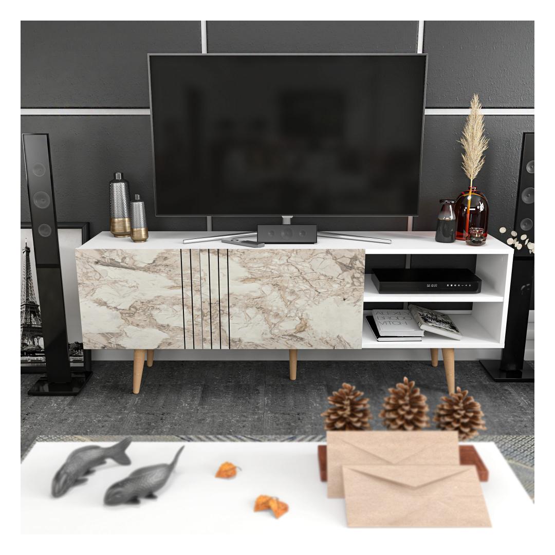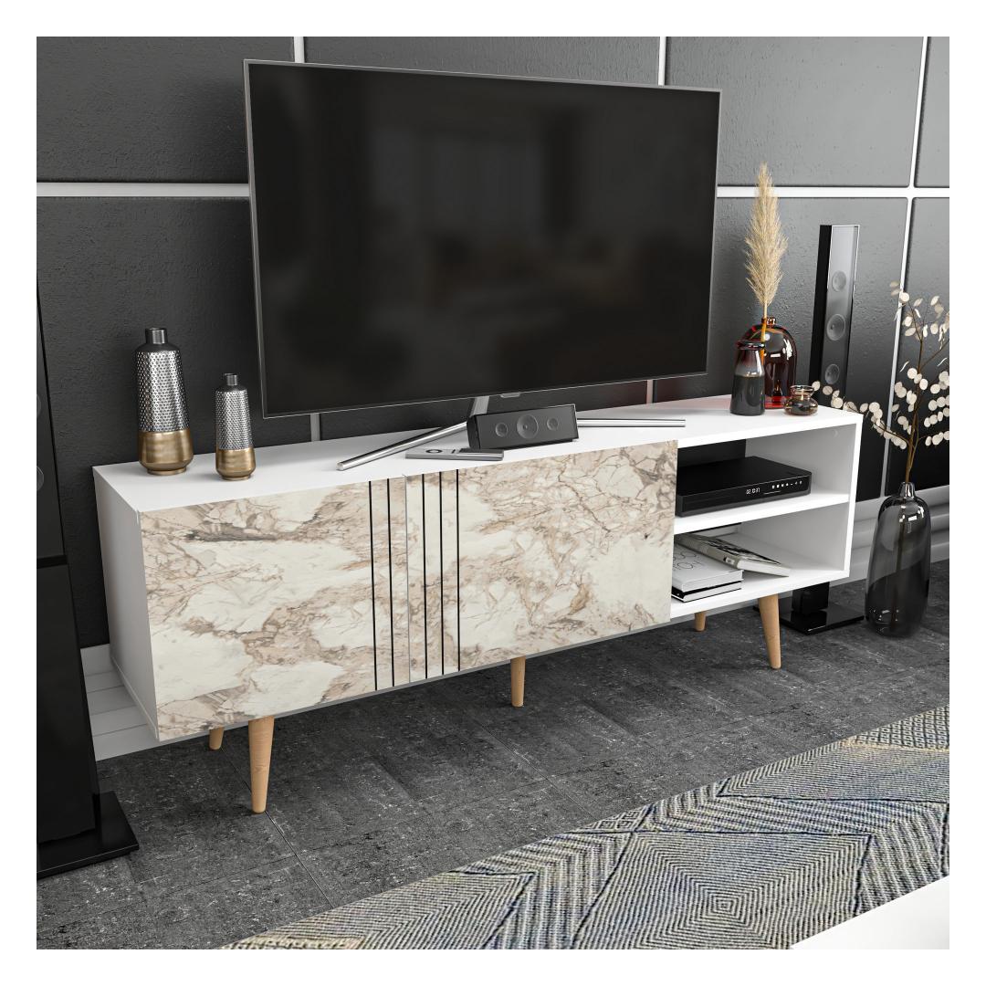 Välistage oma eluruumi kaasaegse ja stiilse teleripuldigaUuendage oma elutuba meie uimastava teleripuldiga, mis ühendab endas funktsionaalsuse ja kaasaegse disaini. See 100% melamiiniga kaetud puitlaastplaadist valmistatud teleripult on valmistatud kestma ja vastu pidama ajaproovile. Loo oma koju fookuspunktTänu oma elegantsele ja modernsele disainile on meie teleripult ideaalne täiendus igasse eluruumi. Selle antratsiitne värvus lisab elegantsust, samas kui uudne disain toob teie koju värske ja ainulaadse välimuse.Rikkalik panipaik teie meelelahutusvajaduste jaoks160 cm laiuse, 35 cm sügavuse ja 38,6 cm kõrgusega telerialus pakub piisavalt ruumi kõigi teie meelelahutusvahendite jaoks. Alates mängukonsoolidest kuni dvd-mängijateni saate oma seadmeid ruumikatel riiulitel kenasti korraldada ja välja panna. Kindel ja tugev konstruktsioon18 mm paksusest melamiiniga kaetud puitlaastplaadist valmistatud telerialus on ehitatud nii, et see peab vastu igapäevasele kasutamisele. Selle tugev konstruktsioon tagab stabiilsuse ja vastupidavuse, mis võimaldab teil oma meelelahutuskeskust aastaid nautida. Lihtsa kokkupanek ja hooldusMeie teleritugi on mõeldud lihtsaks kokkupanekuks, selged juhised ja kogu vajalik riistvara on kaasas. Tänu melamiinkattele on seda ka lihtne puhastada ja hooldada, tagades, et see jääb sama hea välja nägema kui uus. Tehnilised üksikasjad:Tootetüüp: Toode on valmistatud puidust ja värvitud, kuid ei sisalda muid seadmeid: Teleri statiivMaterjal: Materjal: Materjal: Materjal: Materjal: Materjal: Materjal: Materjal: materjal: 100% melamiiniga kaetud puitlaastplaatPaksus: 18 mmLaius: 160 cmSügavus: 35 cmKõrgus: 38,6 cmVärv: valgeKontseptsioon: Kaasaegne - uudne - uudsus. Värv: White