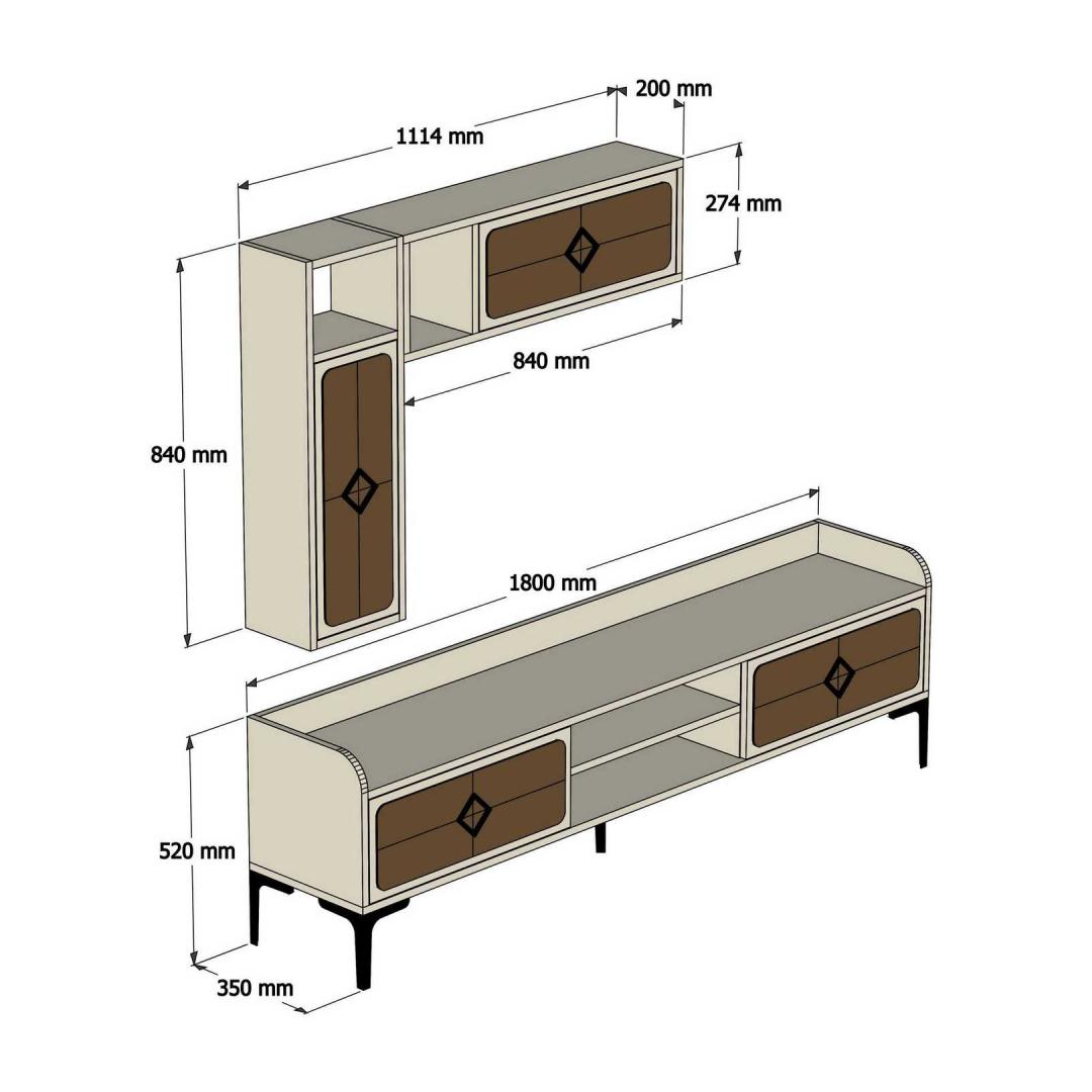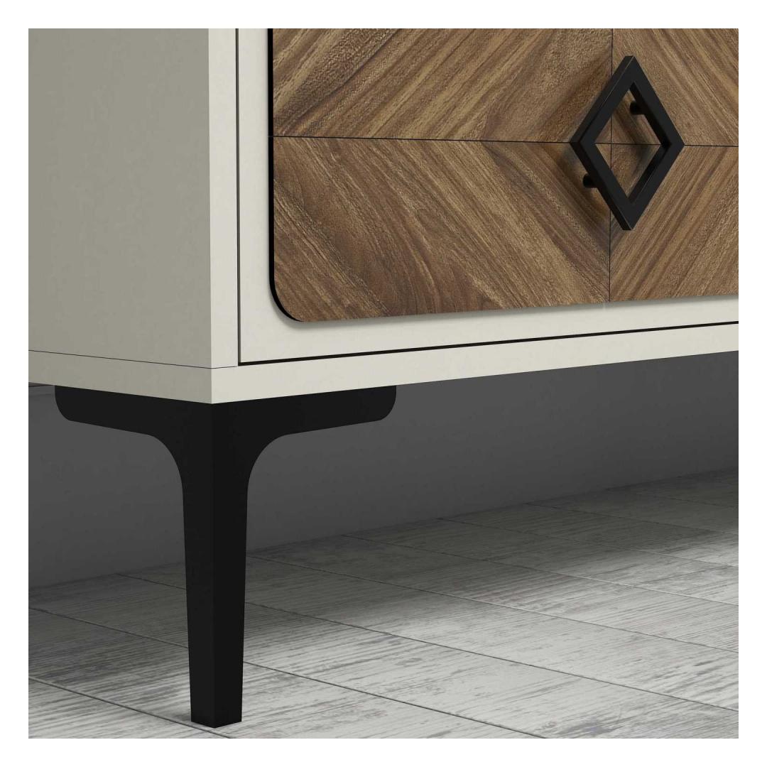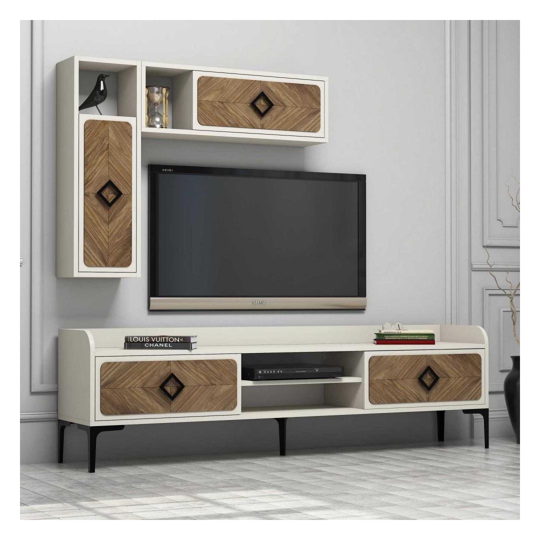 Tänu oma elegantsele ja kaasaegsele disainile saab sellest telerist kohe teie elutoa keskpunkt. Pähklipuu- ja kreemikat värvi kombinatsioon lisab igasse ruumi elegantsust ja rafineeritust. Seade on varustatud arvukate riiulitega, mis pakuvad piisavalt ruumi teie meediaseadmetele, raamatutele ja dekoratiivsetele esemetele.
