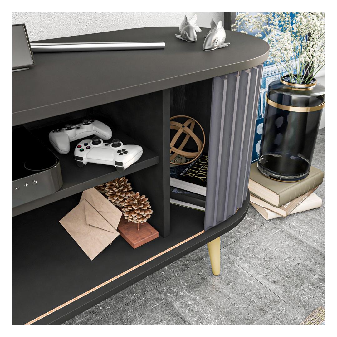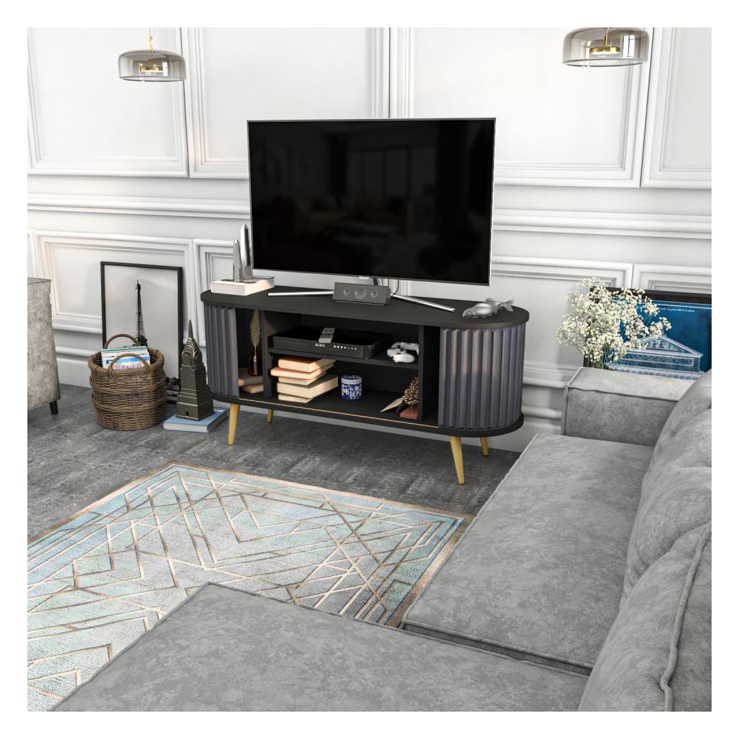 Välistage oma eluruumi stiilse ja funktsionaalse teleripuldigaMuuda oma elutuba lummavaks meelelahutuskeskuseks meie elegantse ja moodsa teleripuldiga. See teleripult on loodud teie vaatamiskogemuse tõstmiseks ning ühendab endas stiili ja funktsionaalsuse, et luua teie koju ideaalne keskpunkt. Tõstke oma stiili elegantsi juurdeMeie ülima täpsusega valmistatud televiisoripult on uhke musta ja antratsiidi värvikombinatsiooniga, mis lisab elegantsi igasse ruumi. Stiilne ja kaasaegne disain täiendab vaevata mis tahes sisustust, muutes selle mitmekülgseks täienduseks teie eluruumile. Organiseerige oma meelelahutustarbeid hõlpsastiÜtle hüvasti segastele kaablitele ja segastele meelelahutuskeskustele. Meie televiisoristendil on rohkelt hoiuruumi, mis võimaldab teil oma meediaseadmeid, mängukonsoole ja dvd-kollektsioone kenasti korraldada. Avarad riiulid ja kapid tagavad hõlpsa ligipääsu teie hädavajalikele asjadele, hoides kõik käeulatuses. Kindlus ja kvaliteet, mida võite usaldada100% melamiiniga kaetud puitlaastplaadist valmistatud teleri statiiv on ehitatud kestma. 18 mm paksus tagab tugevuse ja stabiilsuse, pakkudes usaldusväärset alust teie televiisorile. Võite olla kindel, et see telerialus on loodud vastu pidama aja katsumusele, pakkudes pikaajalist vastupidavust. Tehnilised üksikasjad:Materjal: 100% melamiiniga kaetud puitlaastplaatPaksus: 18mmLaius: 140cmSügavus: 43cmKõrgus: 64cmVärv: must ja antratsiitUuendage oma elutuba meie stiilse ja funktsionaalse teleripuldiga juba täna. Kogege elegantsi ja praktilisuse täiuslikku segu ning looge lummav meelelahutusruum, mis avaldab muljet teie perele ja sõpradele. Värv: Black Anthracite