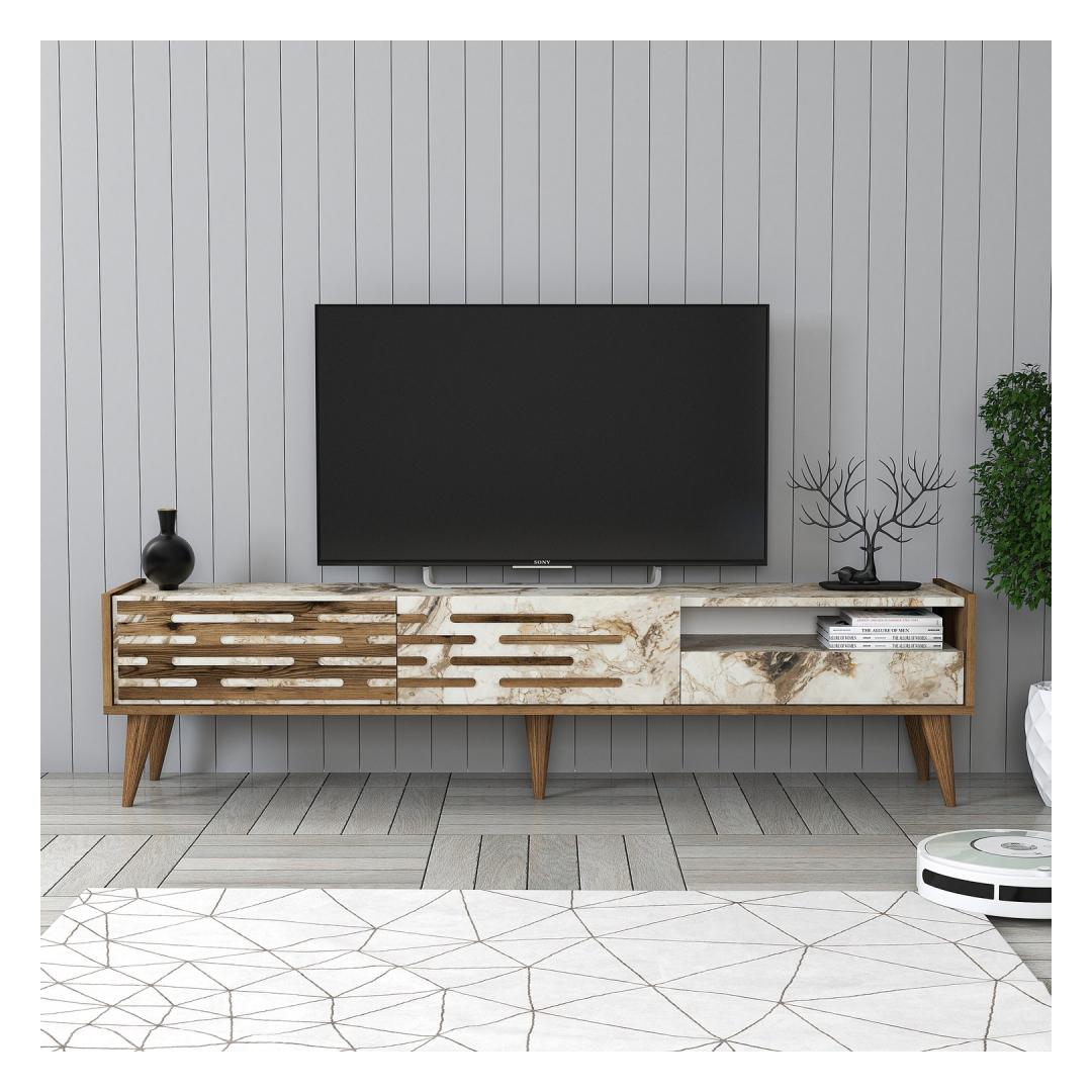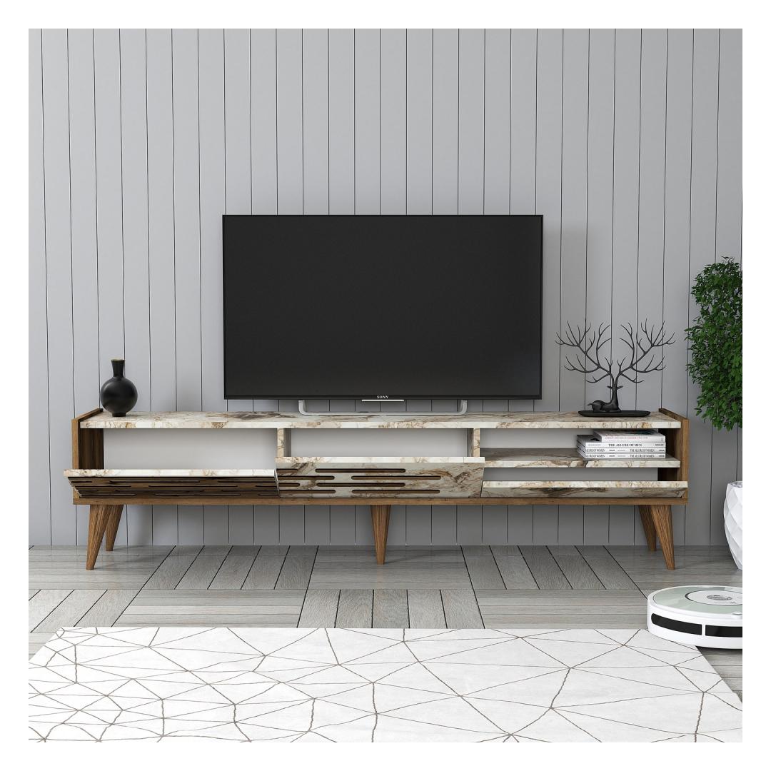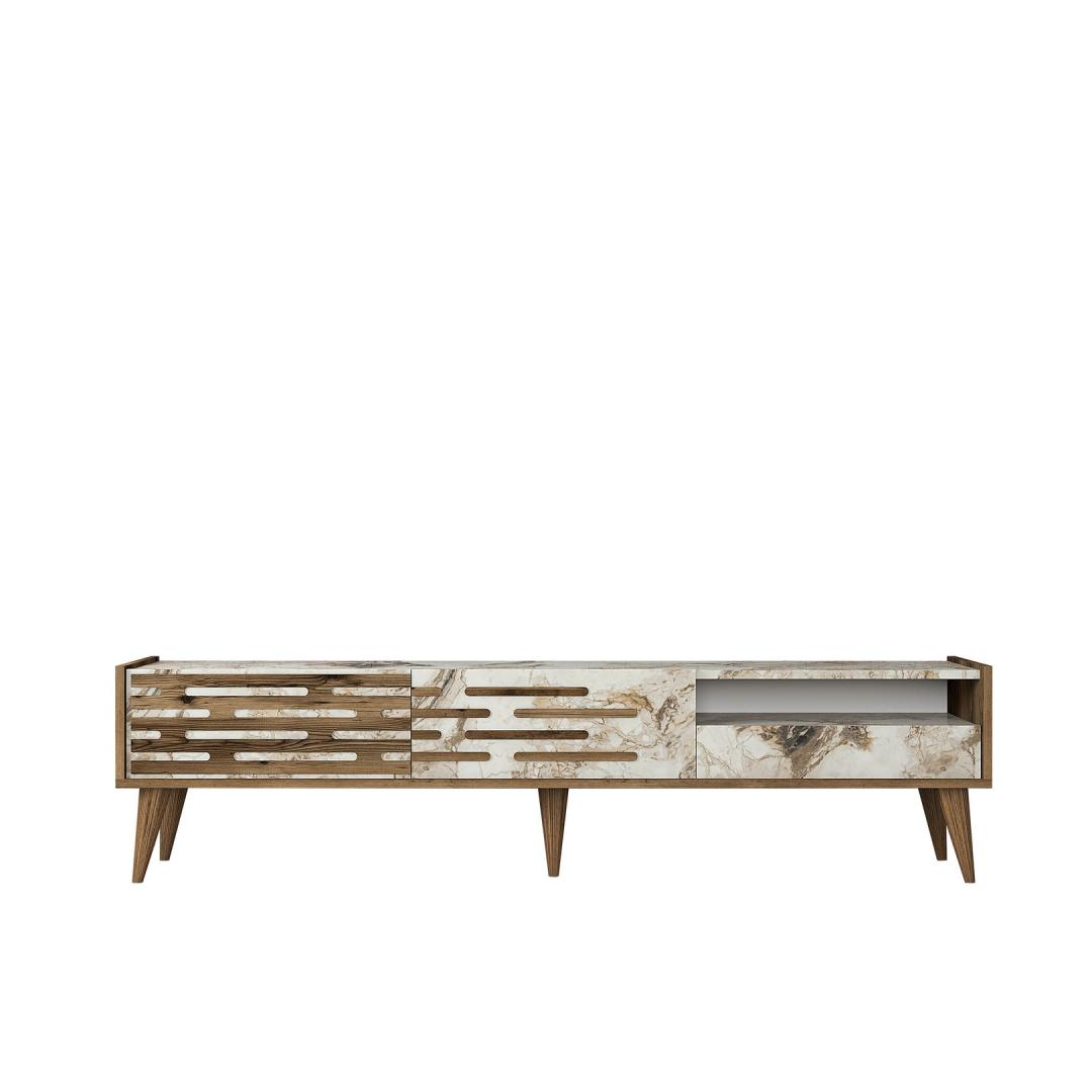 TV laud Valensiya - Walnut, White, Marble
