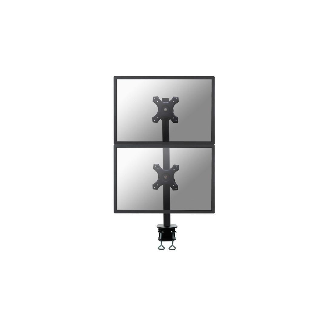 The NewStar desk mount, model FPMA-D700DV is a tilt-, swivel and rotatable desk mount for 2 flat screens up to 24”. This mount is a great choice for space saving placement on desks using a desk clamp.