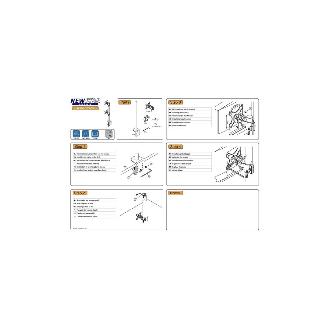 NewStar FPMA-D700DV has two pivot points and is suitable for screens up to 24" (60 cm). The weight capacity of this product is 6 kg each screen. The desk mount is suitable for screens that meet VESA hole pattern 75x75 or 100x100mm. Different hole patterns can be covered using NewStar VESA adapter plates.