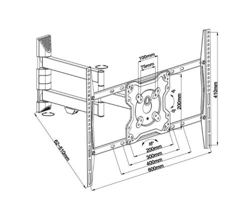 Max. weight 40 kg|75 mm x 75 mm|600 mm x 400 mm|Colour Black