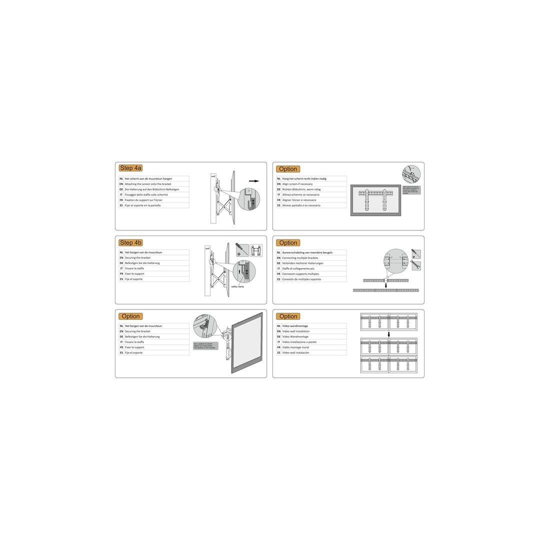 The NewStar wall mount, model LED-VW100BLACK is a fixed wall mount for flat screens up to 60”. This mount is a great choice when you want the ultimate viewing flexibility with your flat screen. Depth of this mount is 5 to 20 centimetres. This wall mount is specially made to be used in video walls. The screen easily can be pulled out. NewStar LED-VW100BLACK is suitable for screens up to 60" (130 cm). The weight capacity of this product is 50 kg each screen. The wall mount is suitable for screens that meet VESA hole pattern 200x200 to 600x400mm. Different hole patterns can be covered using NewStar VESA adapter plates. Create a clean design ambiance for your flat screen TV in the living room, bedroom or home cinema. All installation material including anti-theft lock is included with the product.