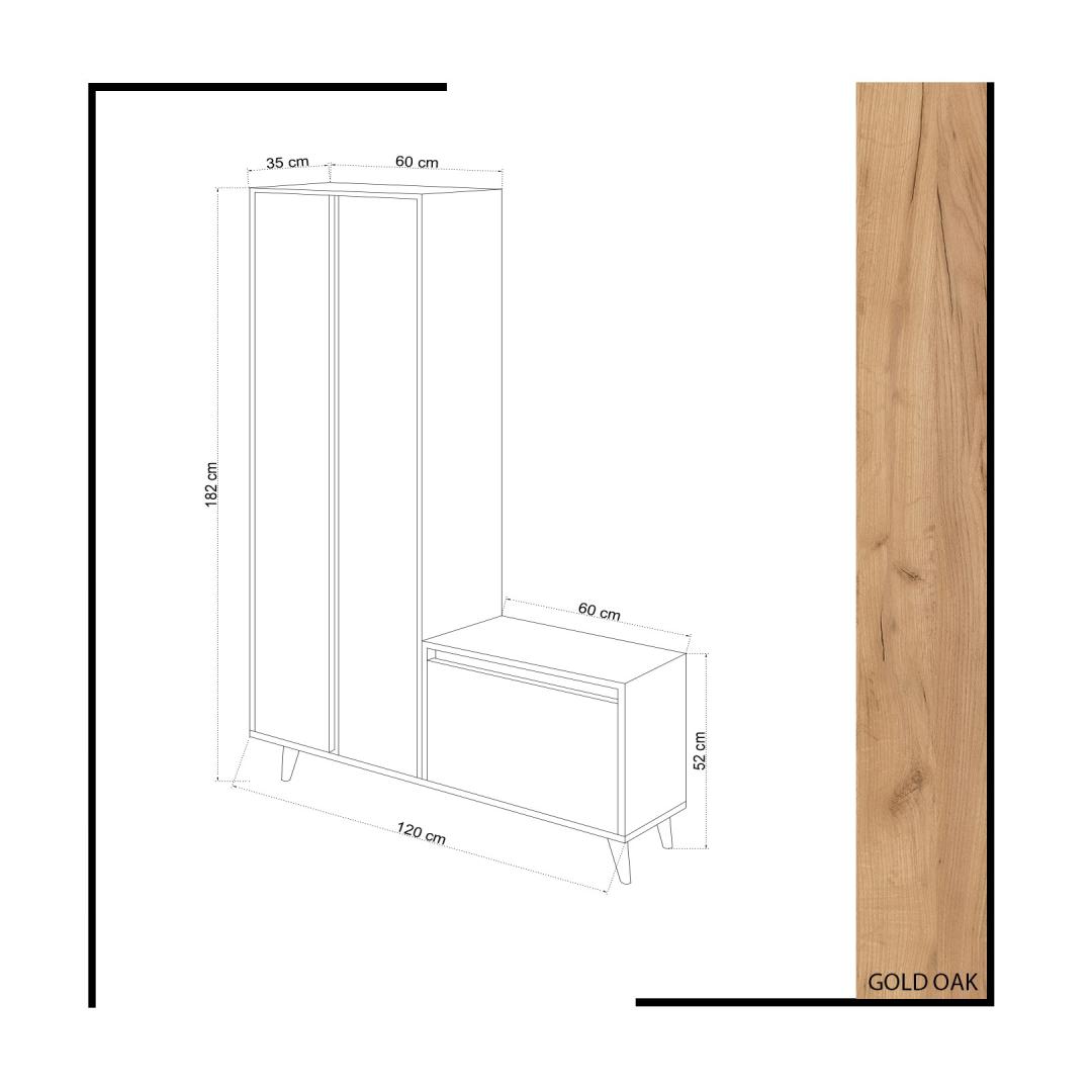 Width: 120 cm Height: 182 cm Depth: 35 cm