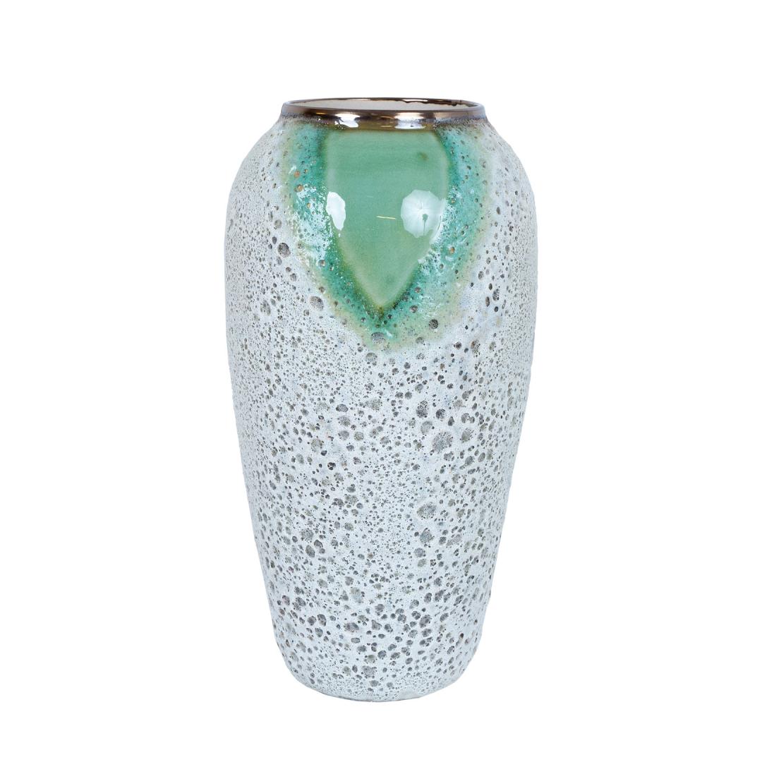 Vaas TITAN STONE D17xH34cm, roheline/valge tekstuur, keraamika
