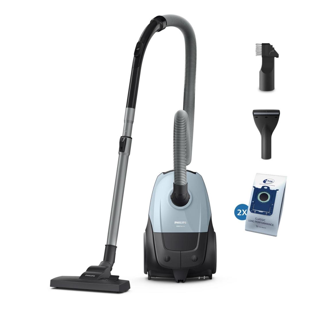 Philips 2000 series XD1142/10. Maximum input power: 800 W. Type: Cylinder vacuum, Cleaning type: Dry, Dust container type: Dust bag, Dust capacity: 3 L. Vacuum air filtering: HEPA, Dirt separating method: Filtering, Noise level: 77 dB. Product colour: Blue