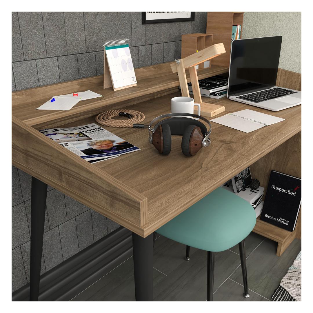 Oma moodsa ja uudse disainiga on see töölaud tõeline statement-tükk, mis muudab teie toa koheselt loovuse ja inspiratsiooni pelgupaigaks. Pähklipuidust värv(id) lisavad rafineeritust, mistõttu sobib see ideaalselt igasse kaasaegsesse keskkonda.