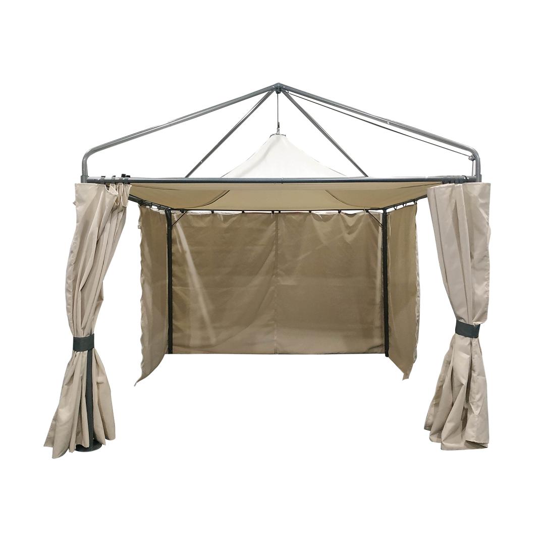 Varikatus MADRID 3x3m beeþ. Varikatus loob meeldiva varjualuse lõõgastumiseks. See pakub leevendust kuuma päikese eest ja ka kergemate tuulepuhangute korral. Katus on valmistatud polüuretaankattega beeþist polüesterkangast 250g/m² ning küljekardinad on polüesterkangast 160g/m². Toote hall terasraam on pulbervärvitud. Terasest tugipostide mõõdud on D57x1,3mm, kaldtalade mõõdud D38x1,2mm ja ripptala 30x15mm. HOIATUS: varikatus tuleb kasutamisel fikseerida aluspinnale. Toode ei ole mõeldud kasutamiseks tugeva tuule ja vihma korral.