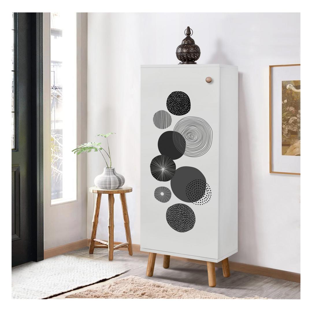100% melamiiniga kaetud puitlaastplaadist valmistatud kingakapp on valmistatud kestma. Selle 18 mm paksus tagab tugevuse ja stabiilsuse, samas kui täispuidust jalad ja käepidemed lisavad kogu disainile elegantsi. UV-kate mitte ainult ei suurenda selle vastupidavust, vaid annab sellele ka läikiva viimistluse, mis täiendab mis tahes sisekujundust.