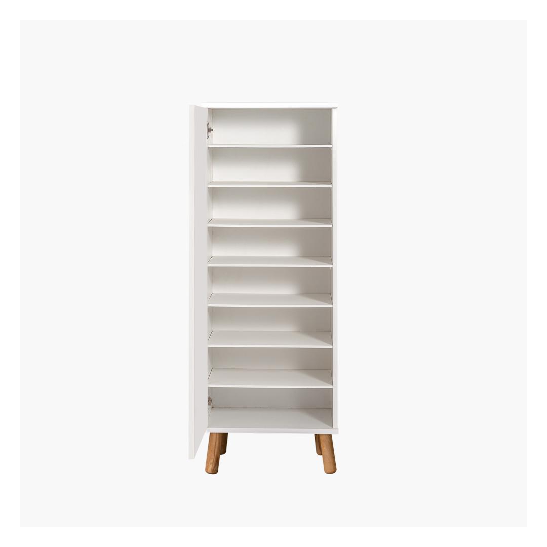 Puhta ja moodsa disainiga kingakapp sulandub vaevata mis tahes sisustusstiiliga. Karge valge värvus lisab teie ruumile elegantsi, luues külalislahke atmosfääri. Kapp on varustatud arvukate riiulitega, mis pakuvad piisavalt ruumi kõigi teie lemmikjalatsite hoiustamiseks.