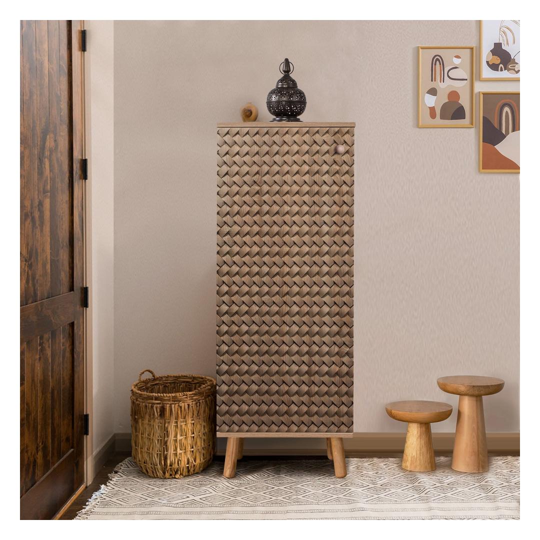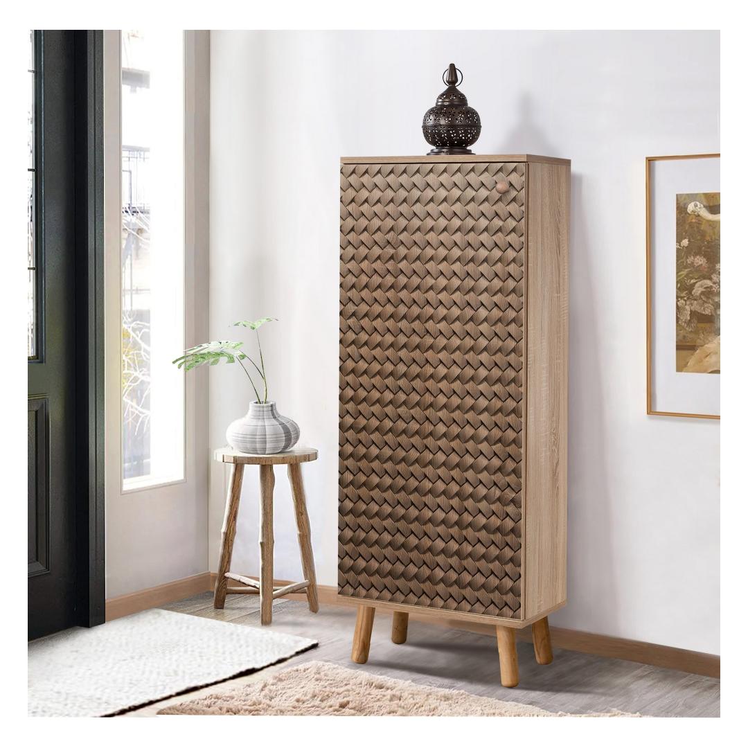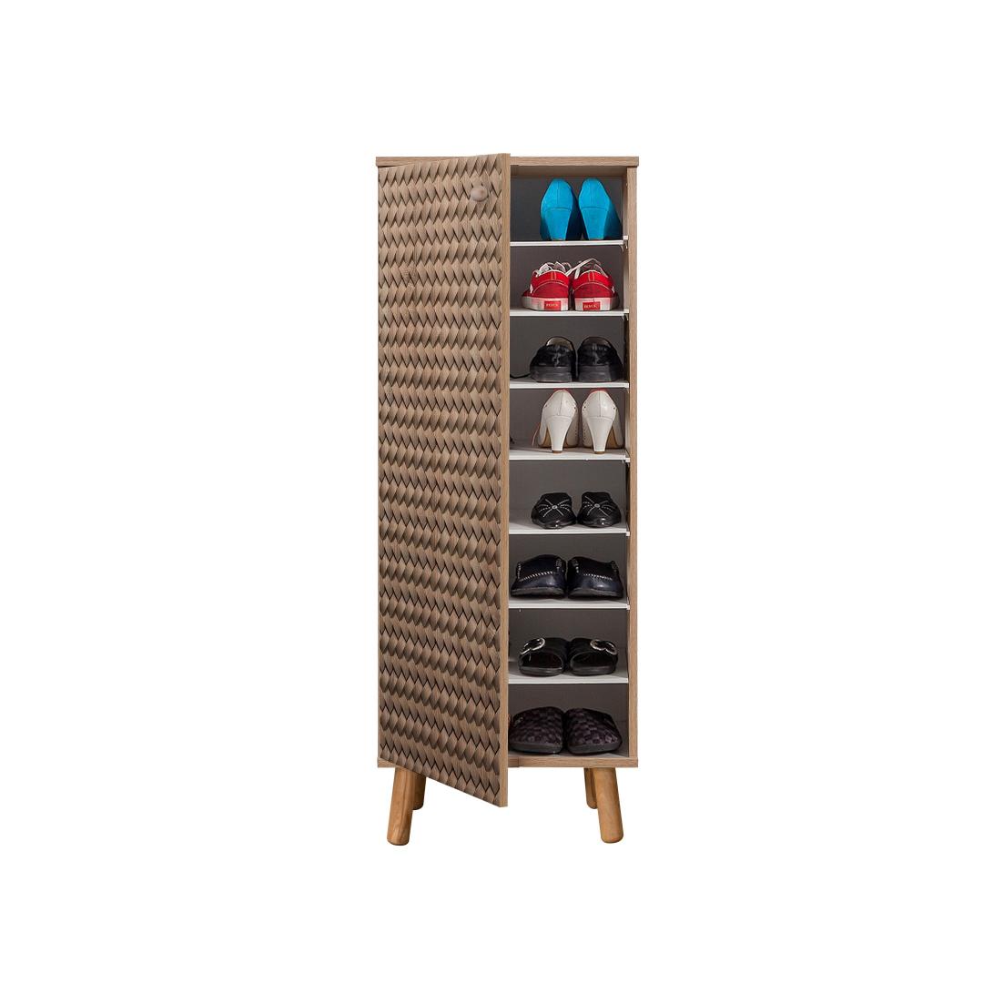 Meie kingakapp on valmistatud 100% melamiiniga kaetud puitlaastplaadist, mis tagab vastupidavuse ja pikaealisuse. Paksus 18 mm lisab tugevust, mistõttu on see võimeline vastu pidama mitme paari kingapaari kaalule. Kapil on täispuidust jalad ja käepidemed, mis lisavad selle disainile elegantsust. Sonomo värvus lisab igasse ruumi sooja ja kutsuvat tunnet.