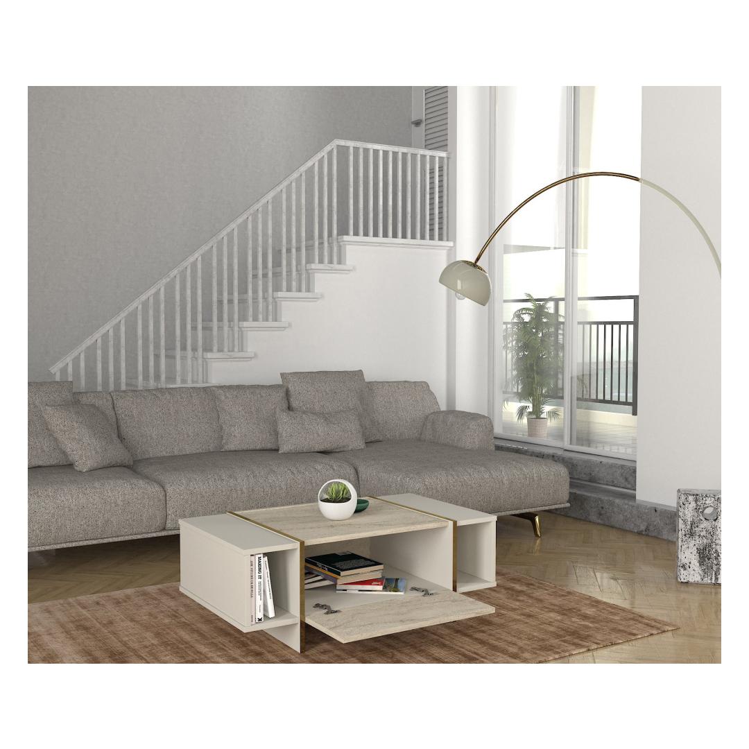 Muuda oma eluruumi meie kauni marmorist kohvilaudadega. See erakordne ese ei ole mitte ainult laud, vaid ka kunstiteos, mis tõstab iga ruumi stiili. Sujuv disain ja elegantne travertiini ning liivakivi värv lisavad sinu koju luksuse puudutuse.Tõsta oma eluruumiKujutle, kuidas naudid hommikukohvi või võõrustad sõpru selle kauni marmorist kohvilauda ümber. Selle ainulaadne disain ja kvaliteetsed materjalid teevad sellest igas ruumis silmapaistva elemendi. Olgu see siis meelelahutuseks või lihtsalt stiilseks keskpunktiks, see laud kindlasti jätab mulje.Funktsionaalne ja stiilneMeie marmorist kohvilaud on mitte ainult kaunis mööbliese, vaid pakub ka lisaruumi sinu mugavuseks. Küljel olev riiul on ideaalne koht raamatute, ajakirjade või dekoratiivsete esemete jaoks, hoides sinu eluruumi organiseerituna ja segaduseta.Tehnilised andmed:Materjal: 100% melamiinkattega puitlaastplaatPaksus: 18 mmSuurus: Laius: 103,8 cm, Kõrgus: 37,3 cm, Sügavus: 60 cmKüljel riiuli laius: 19,5 cmJala kõrgus: 10 cmVärv: Travertiini ja liivakiviKontseptsioon: MarmorLisa oma koju elegantsi ja rafineeritust meie marmorist kohvilaudadega. Ära jäta kasutamata võimalust täiustada oma eluruumi funktsionaalse ja stiilse esemega. Tellige oma täna ja koge marmorist luksust oma kodus. Värv: Travertine Sandstone