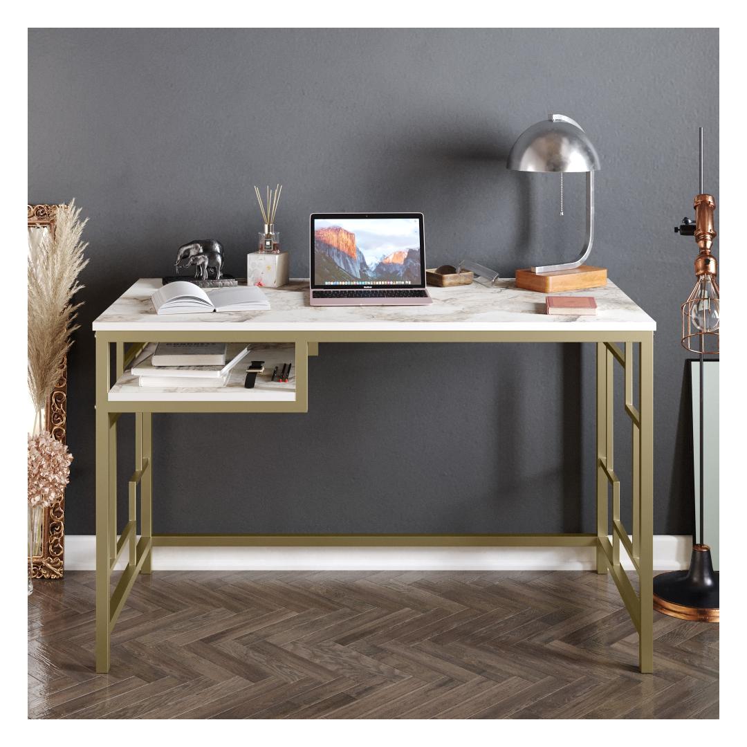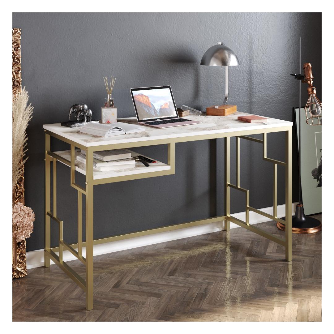 See metalljalgadega kirjutuslaud ei väljenda mitte ainult rafineeritust, vaid pakub ka suurepärast tuge. Kuldse ja valge värvi kombinatsioon loob kütkestava esteetika, mis täiendab vaevata mis tahes sisustusstiili. Ükskõik, kas eelistate minimalistlikku või külluslikumat välimust, meie töölaud on disainitud nii, et see sobiks teie unikaalse maitsega.