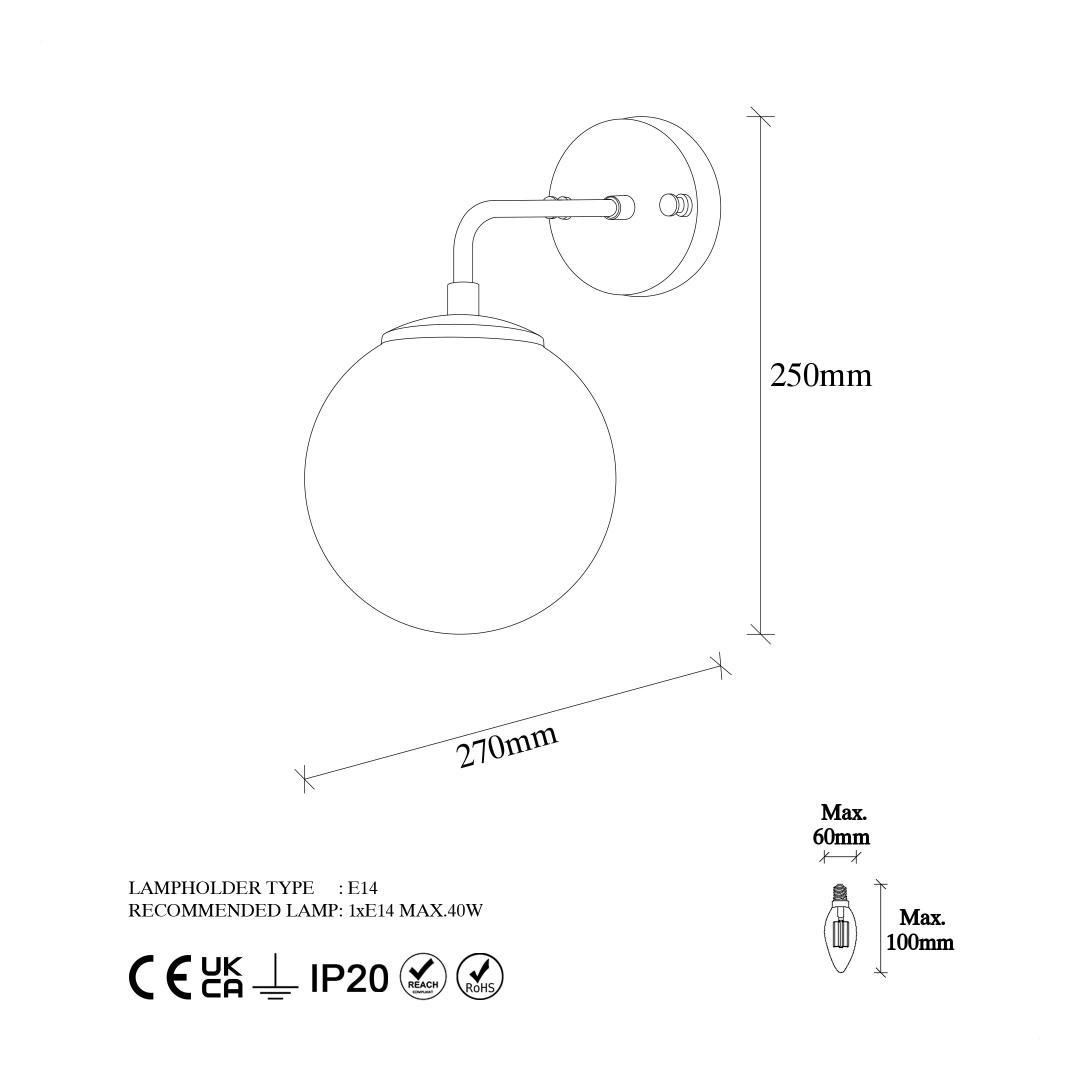 Max. Bulb Size: Diameter: 6 Height: 9 cm