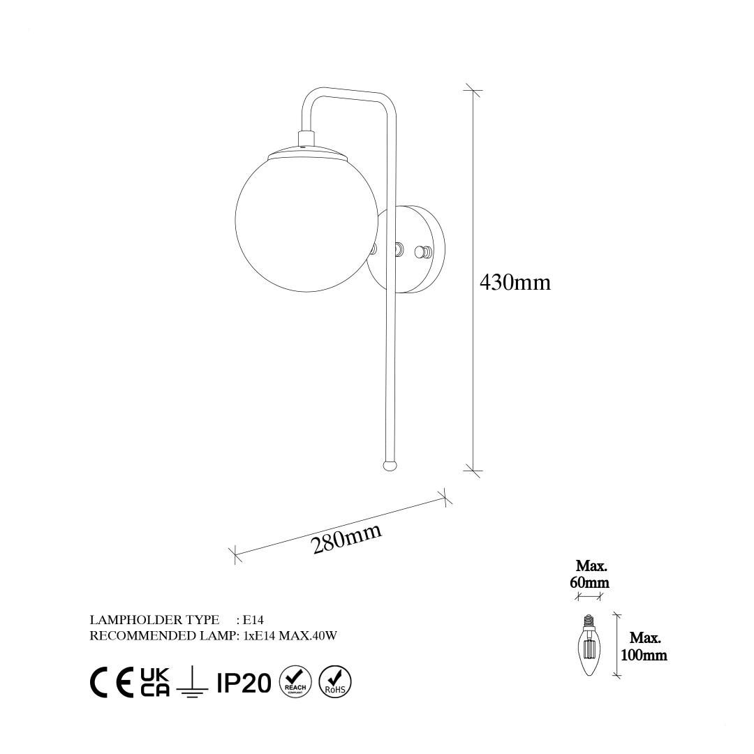 Max. Bulb Size: Diameter: 6 Height: 9 cm