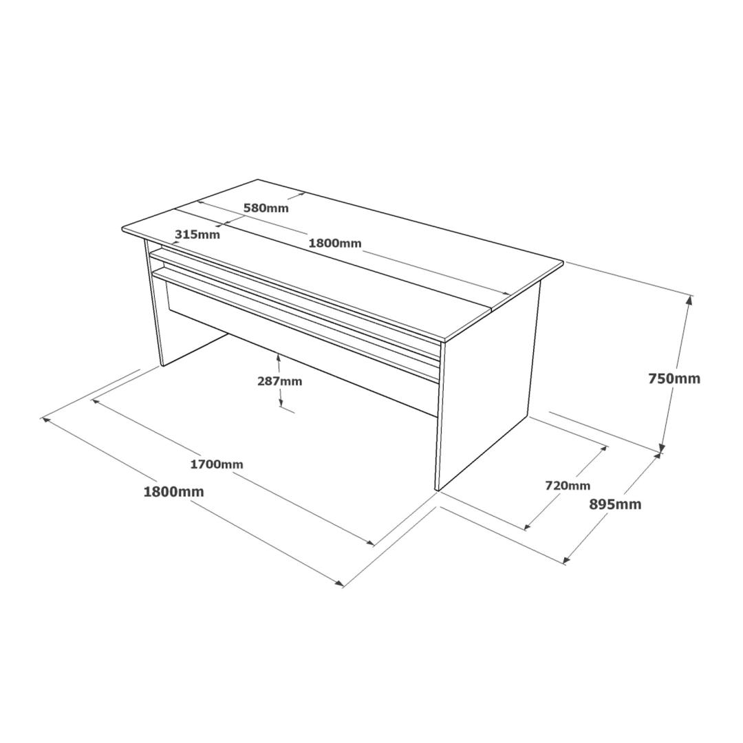 Me mõistame, kui oluline on vastupidavus ja mugavus, kui tegemist on töölauaga. Seepärast on meie töölaud valmistatud 100% melamiiniga kaetud puitlaastplaadist, mis tagab pikaajalise vastupidavuse ning vastupidavuse kriimustustele ja plekkidele. Metallraam lisab stabiilsust ja tugevust, mis võimaldab teil rahulikult töötada või õppida. Laua laius on 180 cm, mis pakub piisavalt ruumi kõigile õppematerjalidele, raamatutele ja isegi sülearvutile.