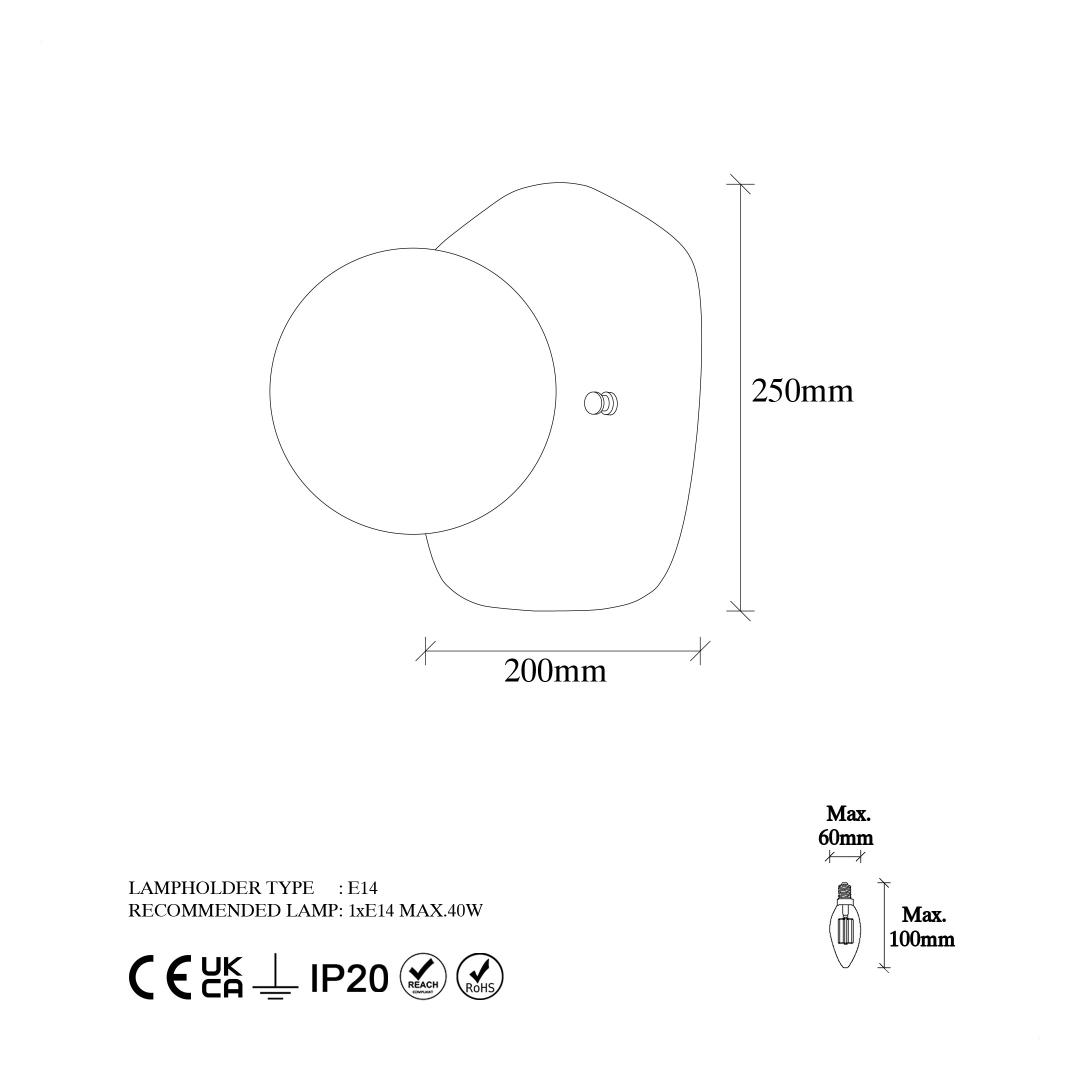 Max. Bulb Size: Diameter: 6 Height: 9 cm