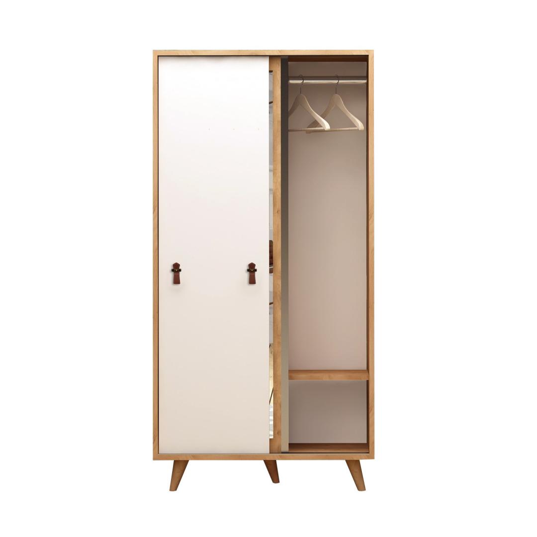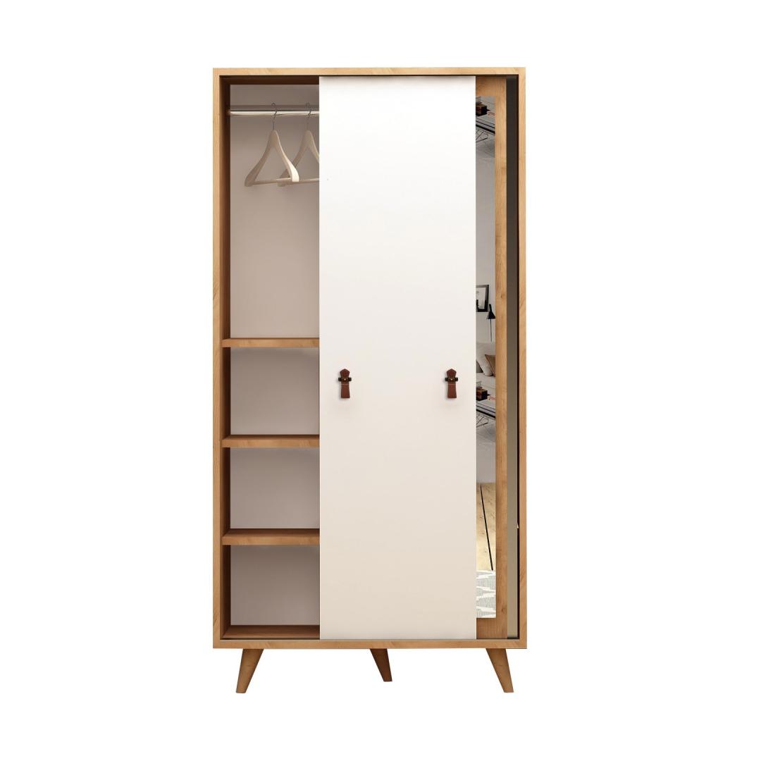 Loo oma unistuste garderoob meie moodsa ja stiilse disainiga!Muuda oma magamistuba meie uimastava garderoobiga korralduse ja stiili paradiisiks. See 100% melamiiniga kaetud puitlaastplaadist valmistatud garderoobikapp ei ole mitte ainult vastupidav, vaid ka elegantse välimusega. Ühevärviline kontseptsioon kombineerituna moodsa uudse disainiga lisab igasse tuppa elegantsi.Rikkalik panipaik kõigile teie asjadeleMeie riidekapp pakub oma suurepäraste mõõtmetega (100 cm laius, 190 cm kõrgus ja 60 cm sügavus) palju ruumi oma riiete, aksessuaaride ja muu vajaliku hoiustamiseks. Arvukad riiulid pakuvad mugavaid hoiuvõimalusi, mis võimaldavad teil hoida oma asju organiseeritult ja hõlpsasti kättesaadavana. Täiendatud funktsionaalsus ja mugavusPeegliga varustatud riidekapp ei aita teil mitte ainult hommikul valmis saada, vaid lisab teie ruumile ka sära. Pu nahast käepide tagab mugava haarde, samal ajal kui puidust jalad lisavad stabiilsust ja elegantsi. Lisaks saab seda riidekappi hõlpsasti seinale kinnitada, et tagada lisaturvalisus ja stabiilsus. Esteetiline atraktiivsus ja mitmekülgsusTamme ja valge värvi kombinatsioon annab sellele riidekapile ajatu ja mitmekülgse välimuse, mis sobib iga sisekujundusega. Olenemata sellest, kas teil on kaasaegne või traditsiooniline stiil, sulandub see riidekapp vaevata, lisades teie ruumile rafineerituse. Tehnilised üksikasjad:Materjal: materjal: 100% melamiiniga kaetud puitlaastplaatPaksus: 18 mmPU nahkJalad: PuidustLaius: 100 cmKõrgus: 190 cmSügavus: 60 cmKaasa arvatud peegelArvukad riiulid hoiustamiseksSaab stabiilsuse ja ohutuse tagamiseks kinnitada seinaleVärv: Tamm ja valge Värv: Oak White