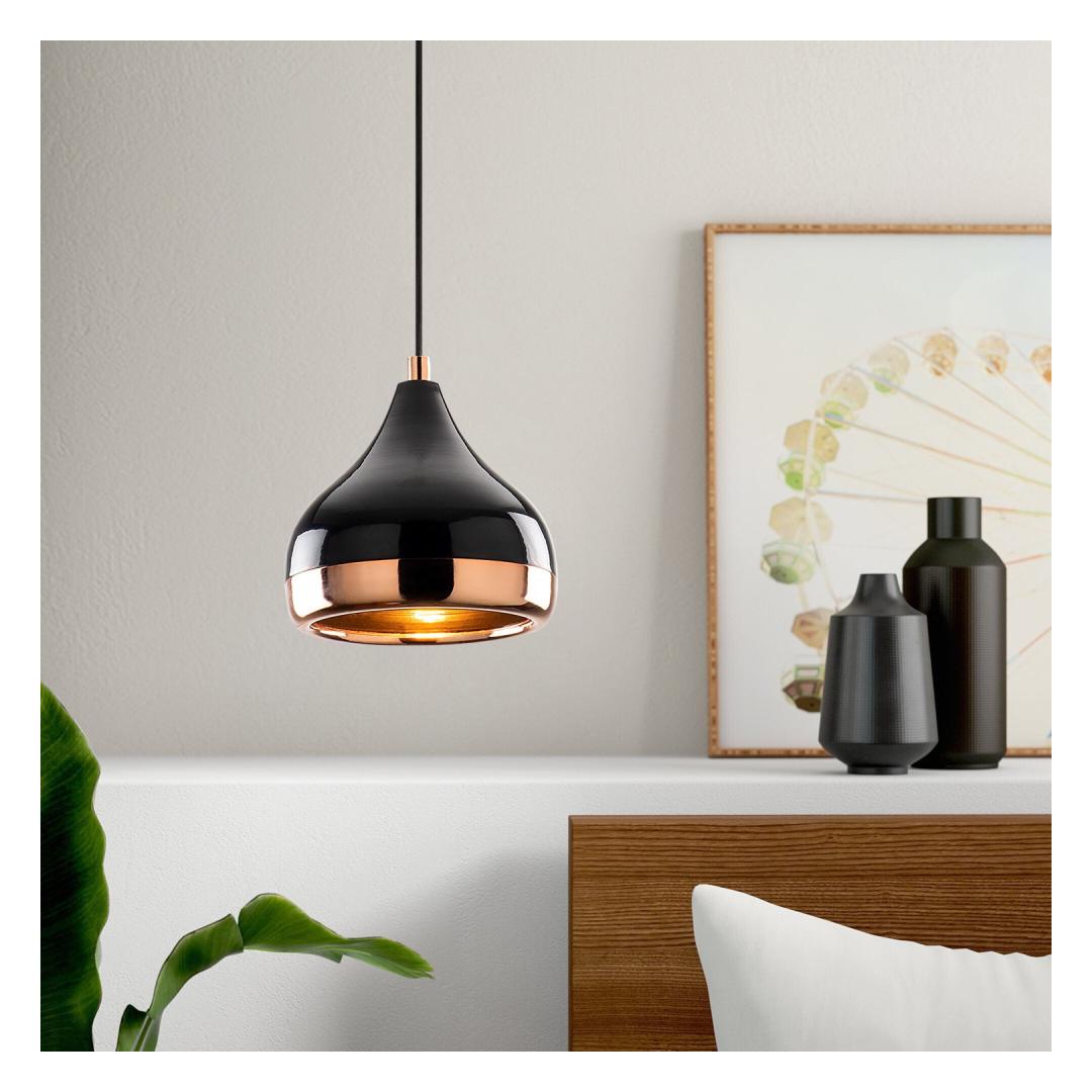 Lühteril on must ja vaskne värvikombinatsioon, mis lisab teie ruumile luksust ja soojust. Kompaktne suurus, mille läbimõõt on 17 cm ja kõrgus 112 cm, muudab selle sobivaks erinevatesse ruumidesse, alates elutubadest kuni söögitubade ja magamistubadeni.