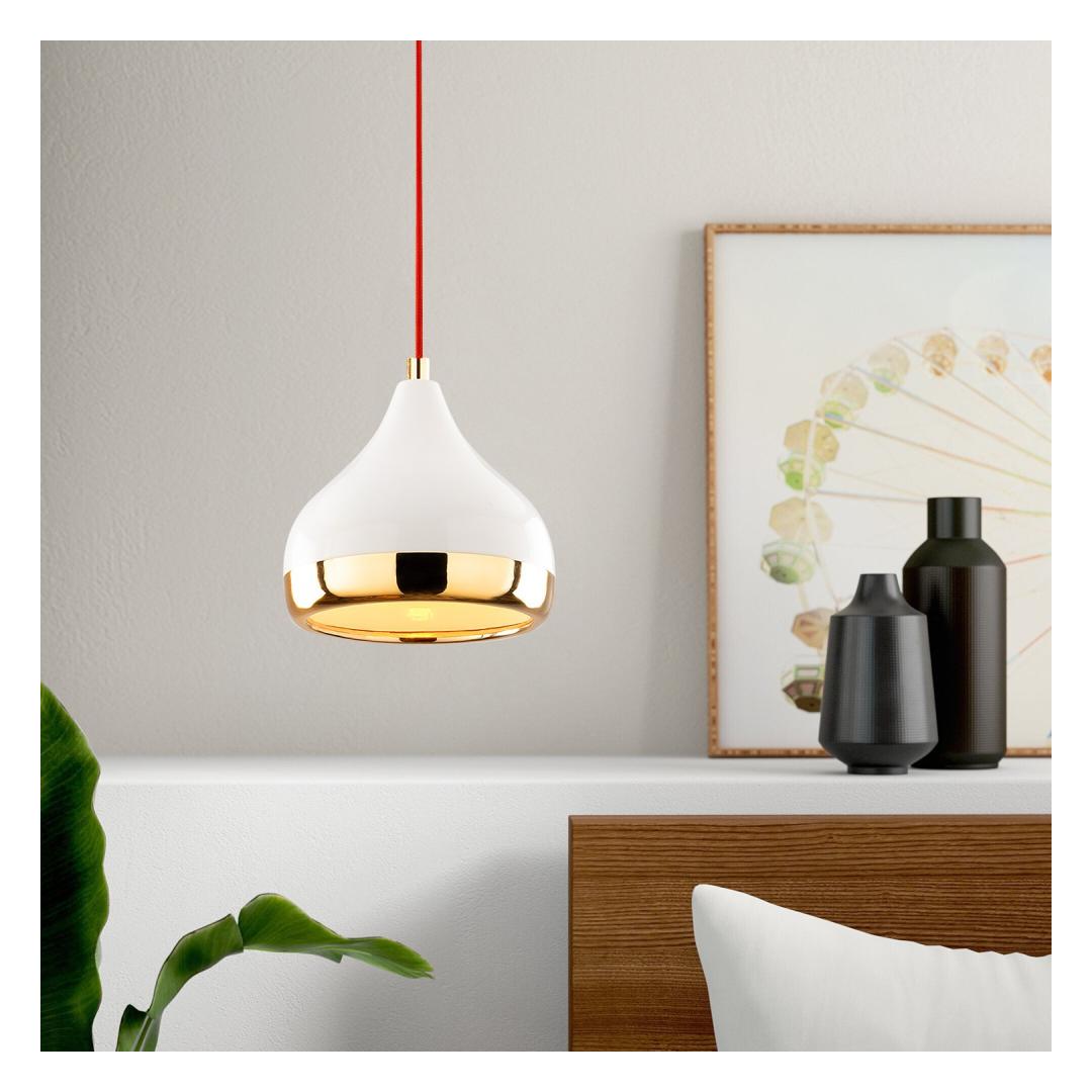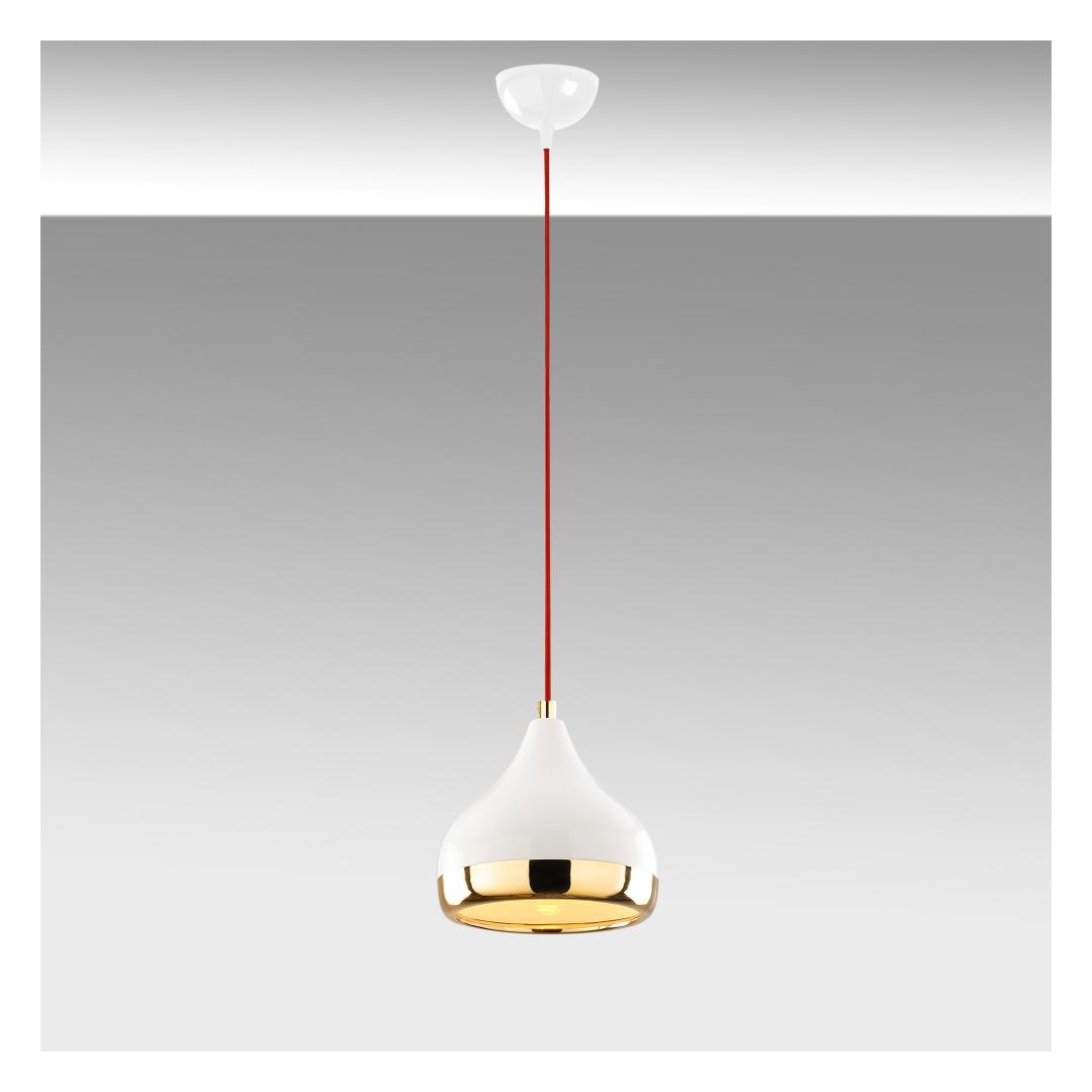 See metallkorpusest valmistatud lühtri väljendab vastupidavust ja elegantsi. Valge, punase ja kuldse värvi kombinatsioon lisab külluslikkust, muutes selle esemeks, mis lummab kõiki, kes teie koju sisenevad.