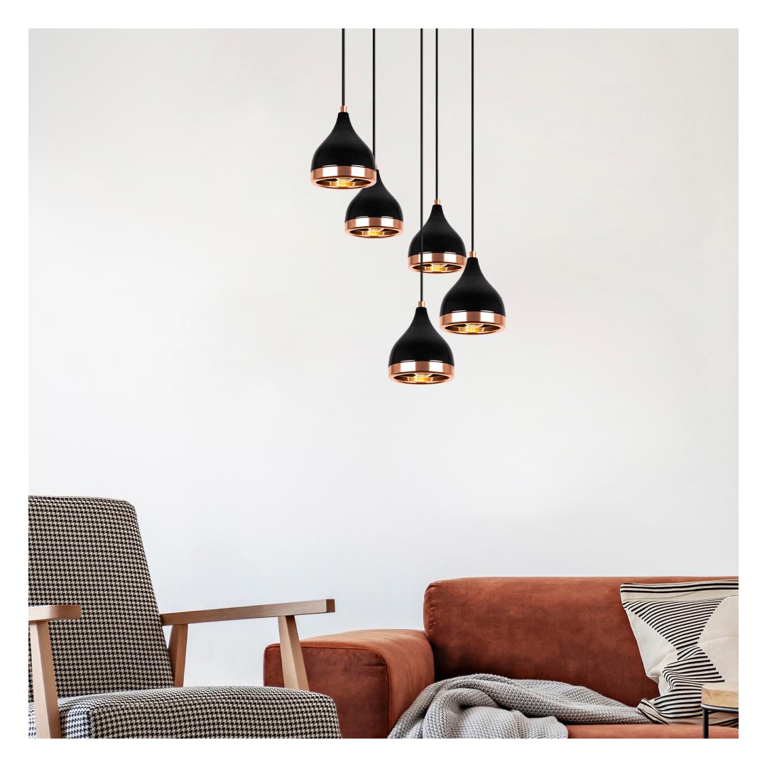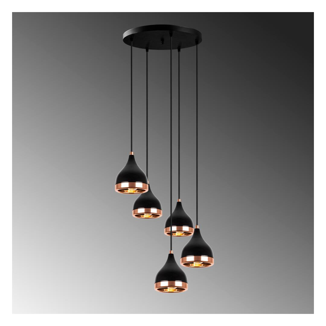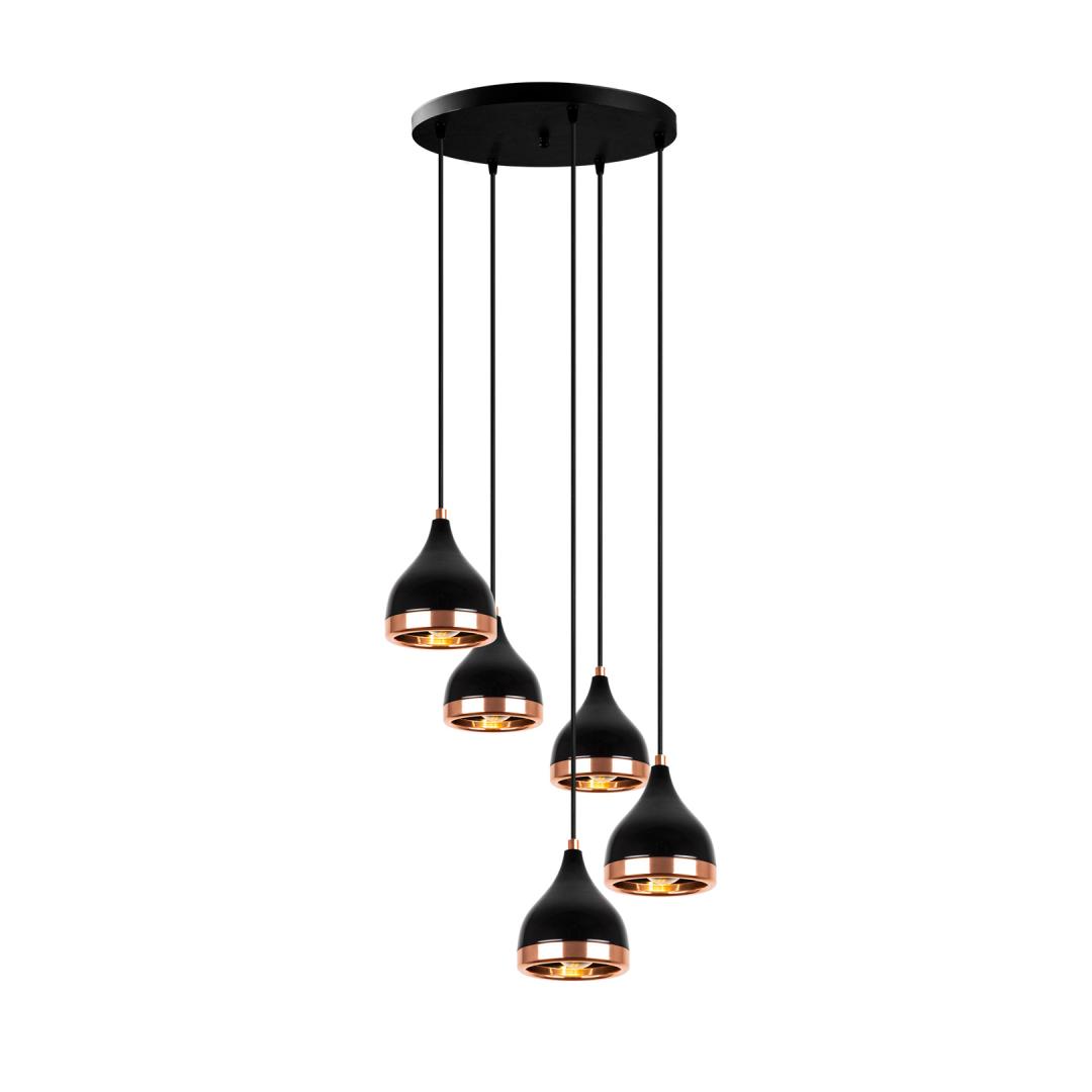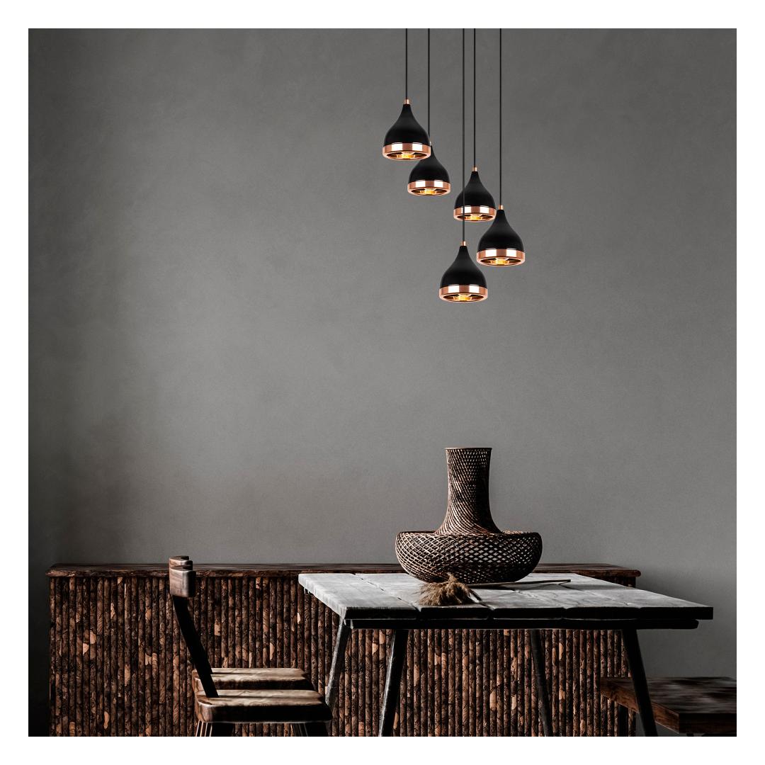 Musta ja vase kontrastsed värvid lisavad sellele lühtrile elegantsi ja stiili. Must viimistlus täiendab mis tahes sisekujundust, samas kui vasksed aktsendid lisavad peene vihje luksuslikkusele. See kombinatsioon loob visuaalselt silmatorkava eseme, mis parandab vaevata teie ruumi üldist esteetikat.